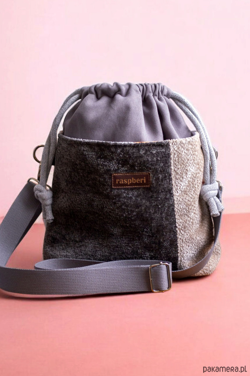 Całość ściągana grubym, bawełnianym sznurkiem w kolorze jasnoszarym.