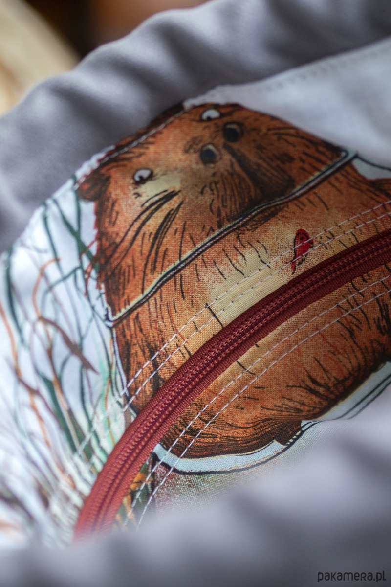 Listonoszka posiada regulowany, bawełniany pasek grubości 3cm w kolorze szarym.