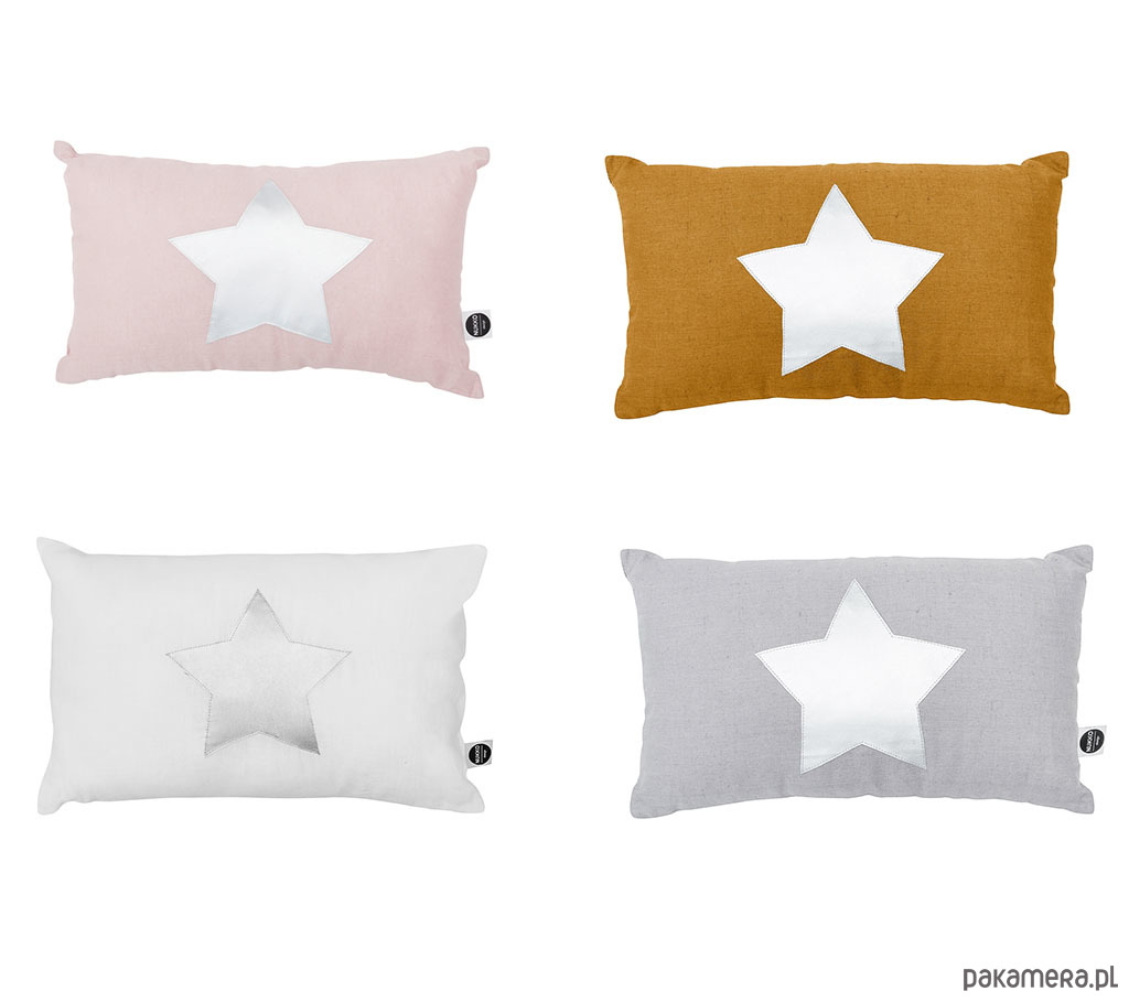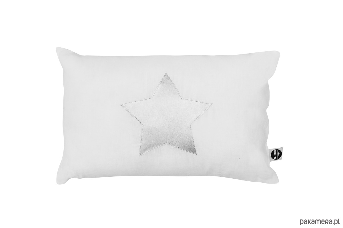 Lniana poduszka ze srebrną gwiazdką doda uroku każdemu wnętrzu. To wyjątkowa dekoracja zarówno pokoiku chłopca jak i dziewczynki. Posiada ukryty suwak, dzięki czemu poszewkę łatwo można zdjąć i uprać. Komplet poszewka z wkładem.