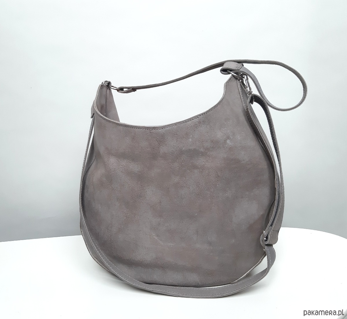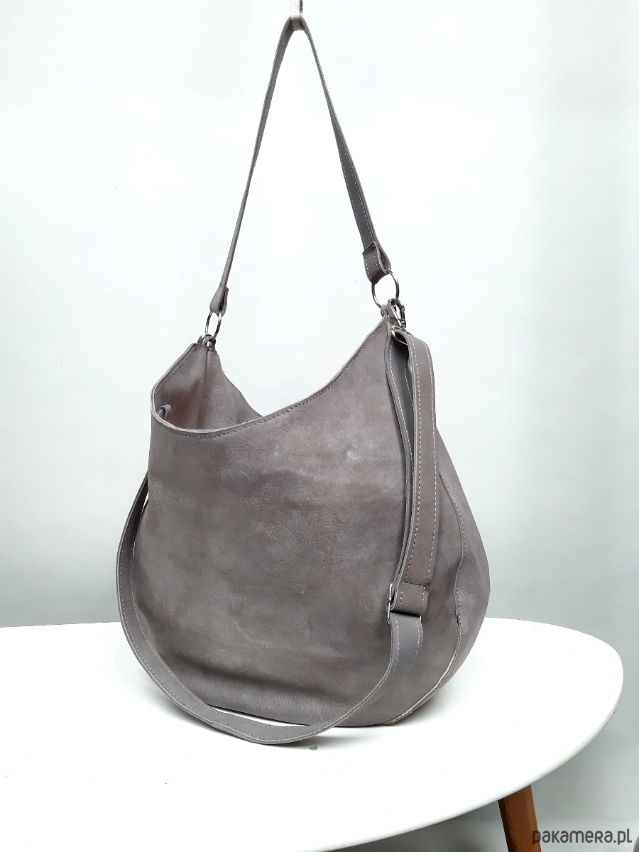 Miękka zaokrąglona torebka w stylu hobo lub dużego "banana bag". Do noszenia na krótszym (ok. 55 cm) pasku na ramieniu lub na skos na regulowanym max. 120 cm.