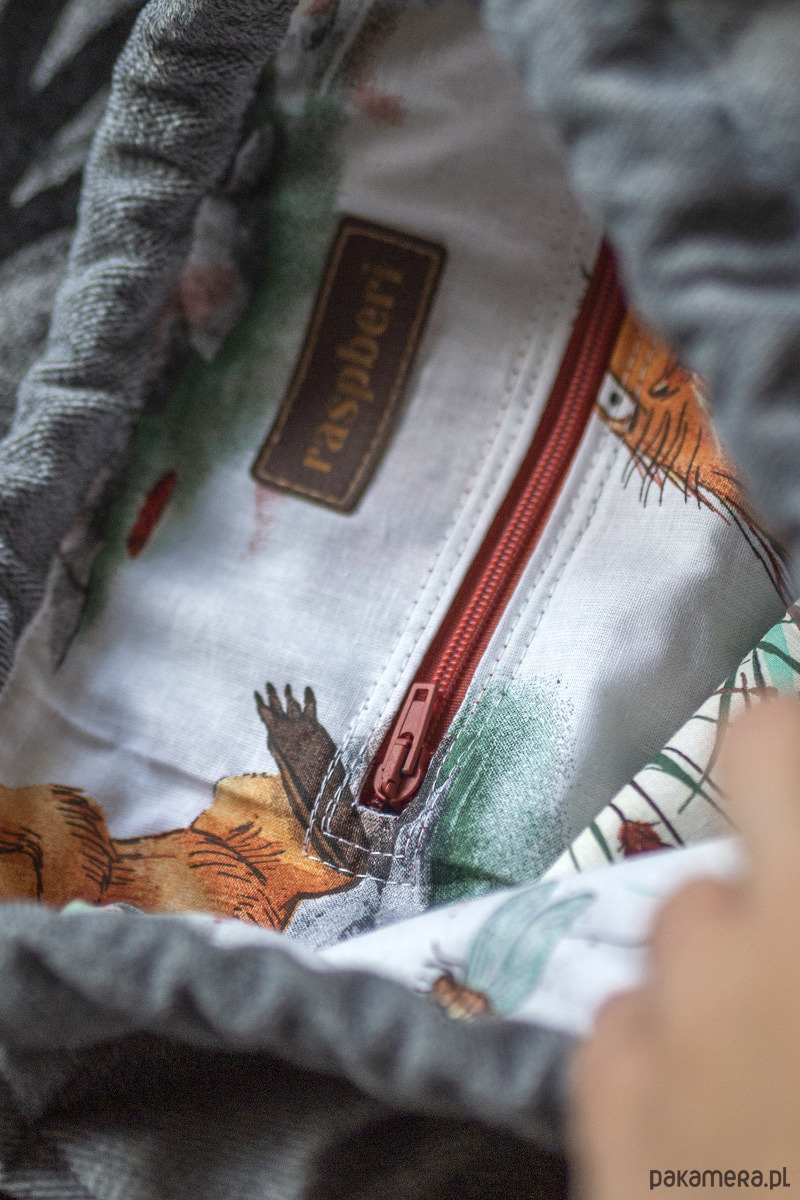 W środku mała kieszonka. Wielkość ok 32x39cm.