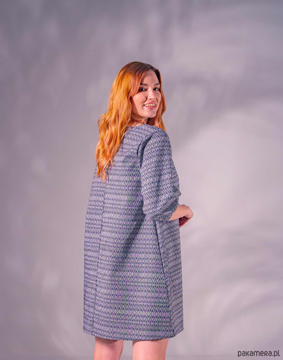 Sukienka wykonana z grubej, żakardowej tkaniny