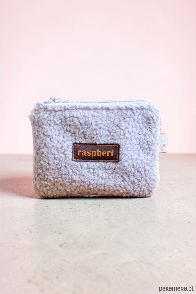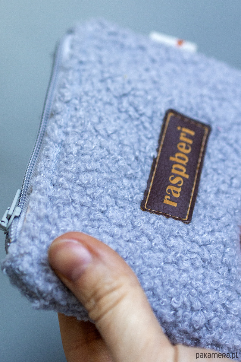 Prosty portfel wykonany z szarej tkaniny typu "baranek". Jest bardzo miły w dotyku i unikatowy.