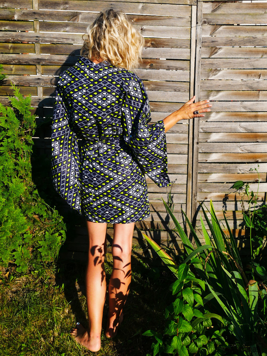 Wyjątkowej urody kimono Sunny Warrior zachwyca soczystością koloru, dwustronnym wzorem, wygodą i oryginalnością. Wykonane jest z dbałością o każdy szczegół z trwałej, bawełnianej tkaniny African Wax. Wzór na tkaninie powstał za pomocą tradycyjnej metody farbowania, inspirowanej batikiem.