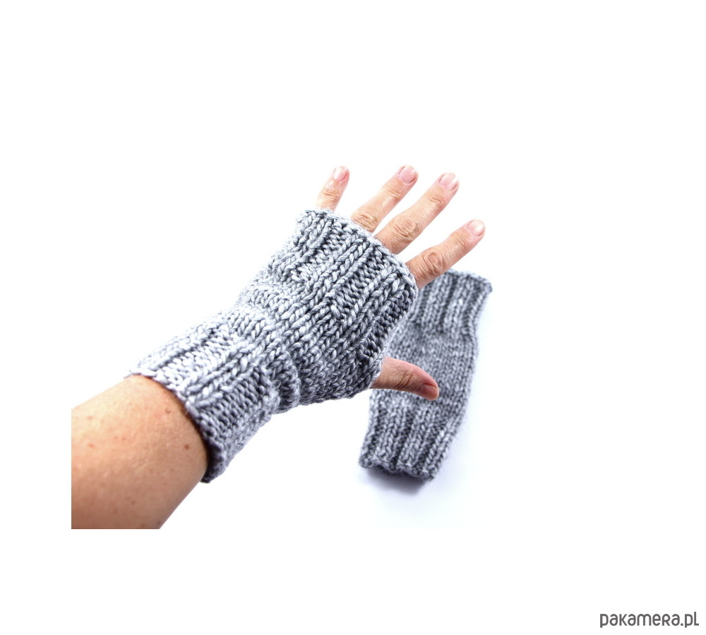 Szare mitenki unisex zrobione na drutach
