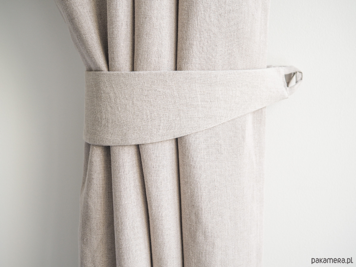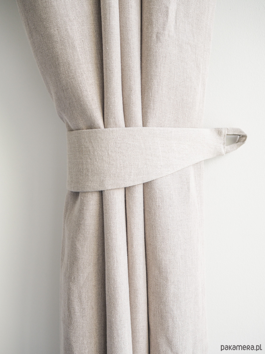 Szarfa do upinania zasłon wykonana ze 100% lnu. Szarfy są szyte z tego samego materiału co nasze zasłony i dodatkowo wzmocnione fizeliną, dzięki czemu zachowują swój kształt. Na obydwu końcach szarfy znajdują się pętelki umożliwiające mocowanie na haczykach.
