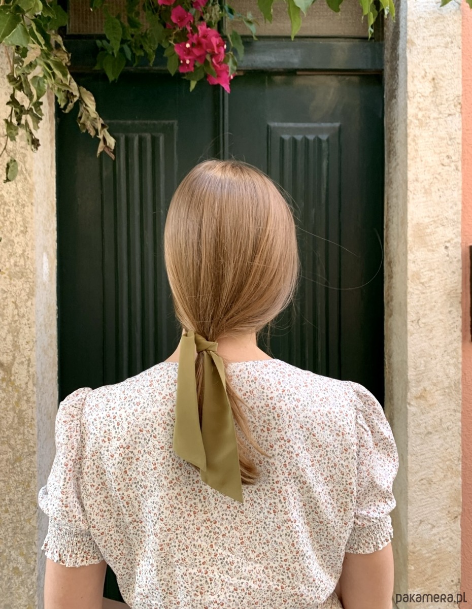 Szarfę możesz zawiązać na włosach, przewiązać przez szlufki spodni, dowiązać do scrunchie, którą już masz w swojej kolekcji lub wykorzystać jako ozdobę torebki.