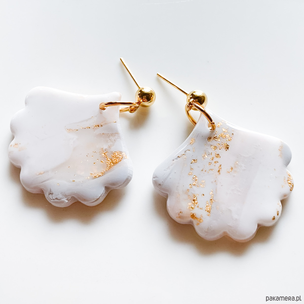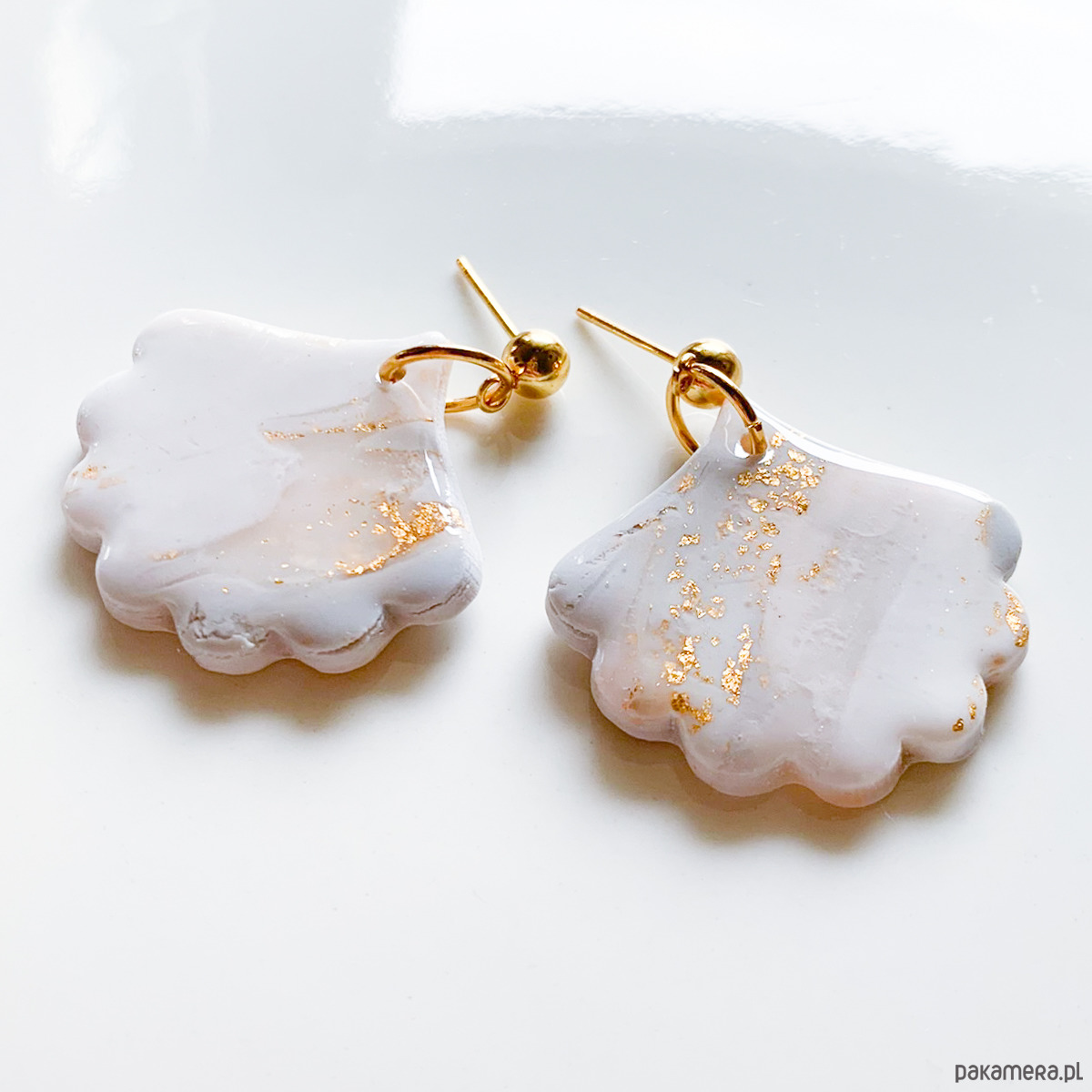 Kolczyki w kolorze szaro-beżowym z dodatkiem koloru białego oraz transparentnego, co sprawia, że wyglądają przepięknie w blasku słońca.