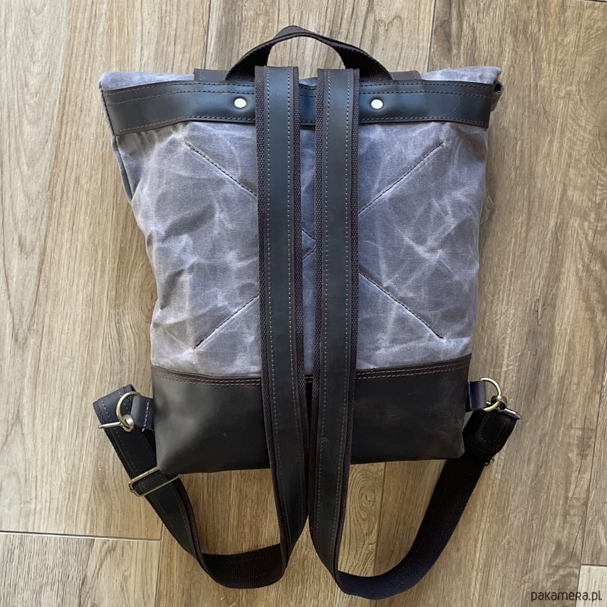 Szaro brązowy plecak z bawełny woskowanej i skóry w stylu Vintage.