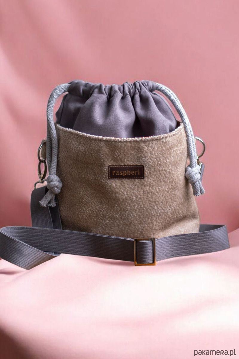 Całość ściągana grubym, bawełnianym sznurkiem w kolorze jasnoszarym.