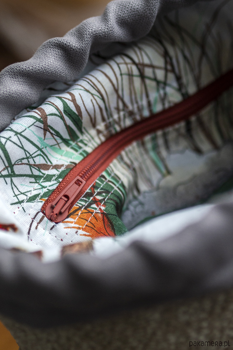 Środek torebki wykończony jest bawełnianą podszewką.
