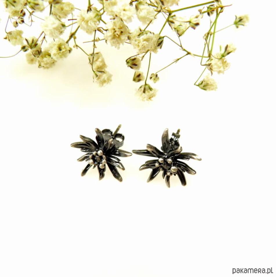 Kolczyki są wykończone oksydą w eleganckim kolorze szarym, co nadaje im subtelnego uroku i rustykalnego wyglądu. Kolorystyka ta doskonale komponuje się z motywem górskiej szarotki, tworząc wyjątkowy design.
