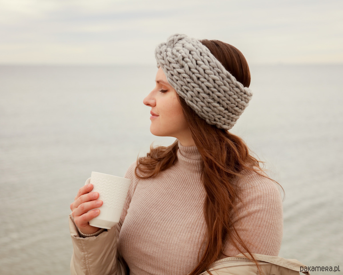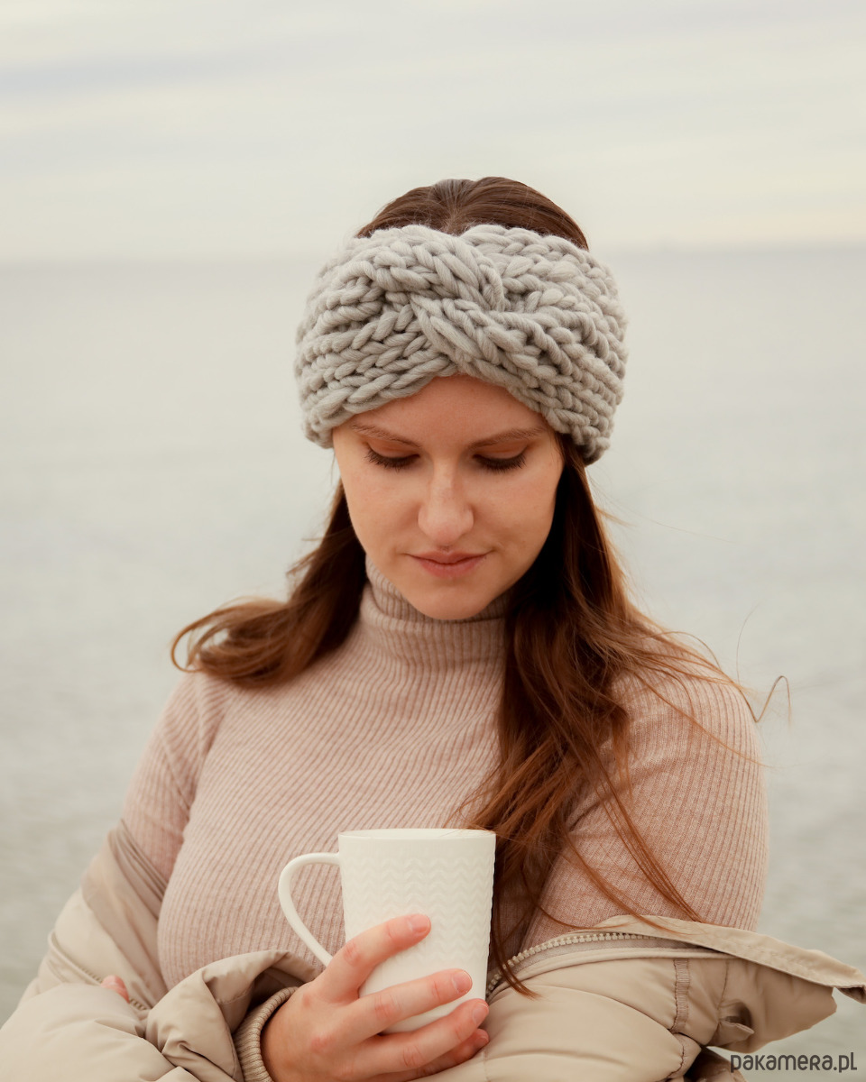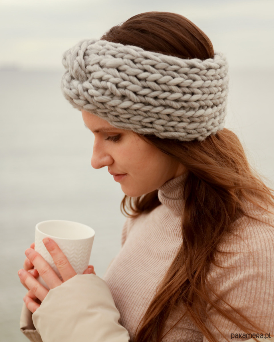 Jest to ZESTAW 2 PRODUKTÓW robionych ręcznie na drutach. Komplet składa się z komina i opaski ze 100% grubej wełny peruwiańskiej w jednakowym kolorze (mimo możliwych różnic na ekranie).