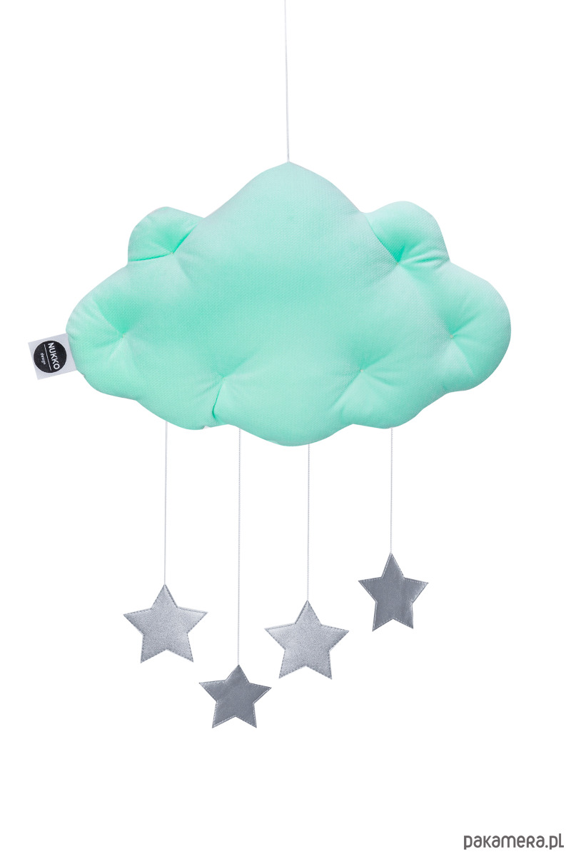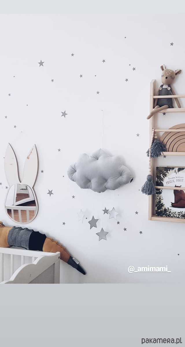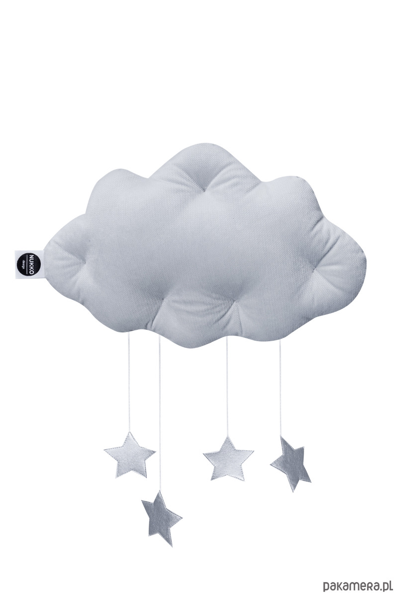 Mobil chmurka Velvet ze srebrnymi metalicznymi gwiazdkami doda uroku każdemu wnętrzu. Znajdzie swoje miejsce pod baldachimem, nad łóżeczkiem lub ozdobi ścianę pokoiku dziecka. Jest to niezwykły element dekoracyjny, który dopełni aranżację pokoiku malucha i rozbudzi jego wyobraźnie.