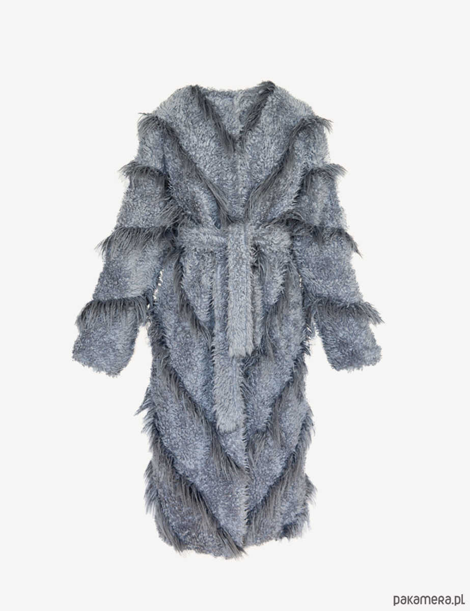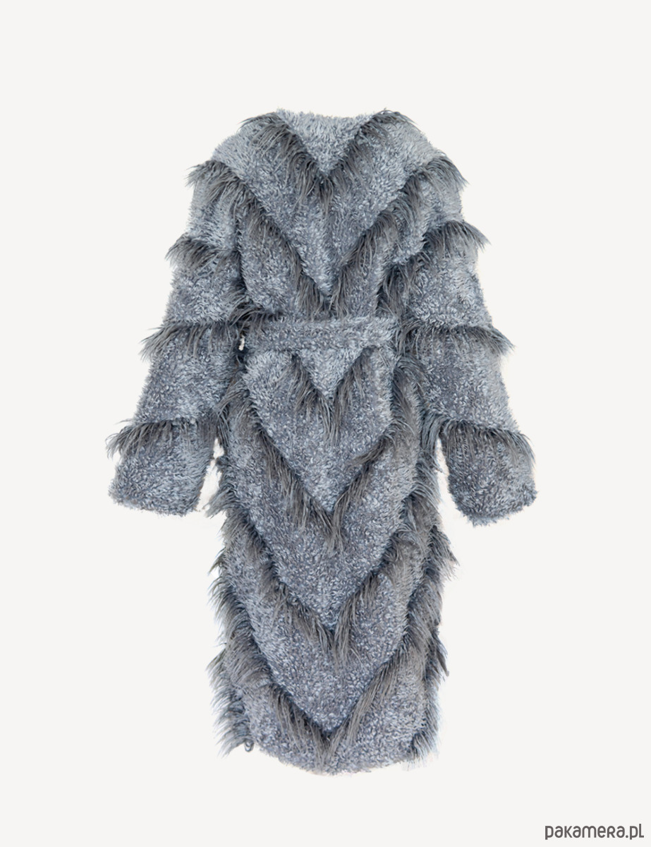 Szary płaszcz ze sztucznego futra