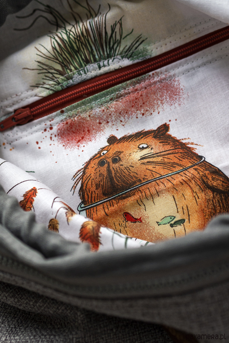 Biała, wzorzysta, bawełniana podszewka w kapibary.