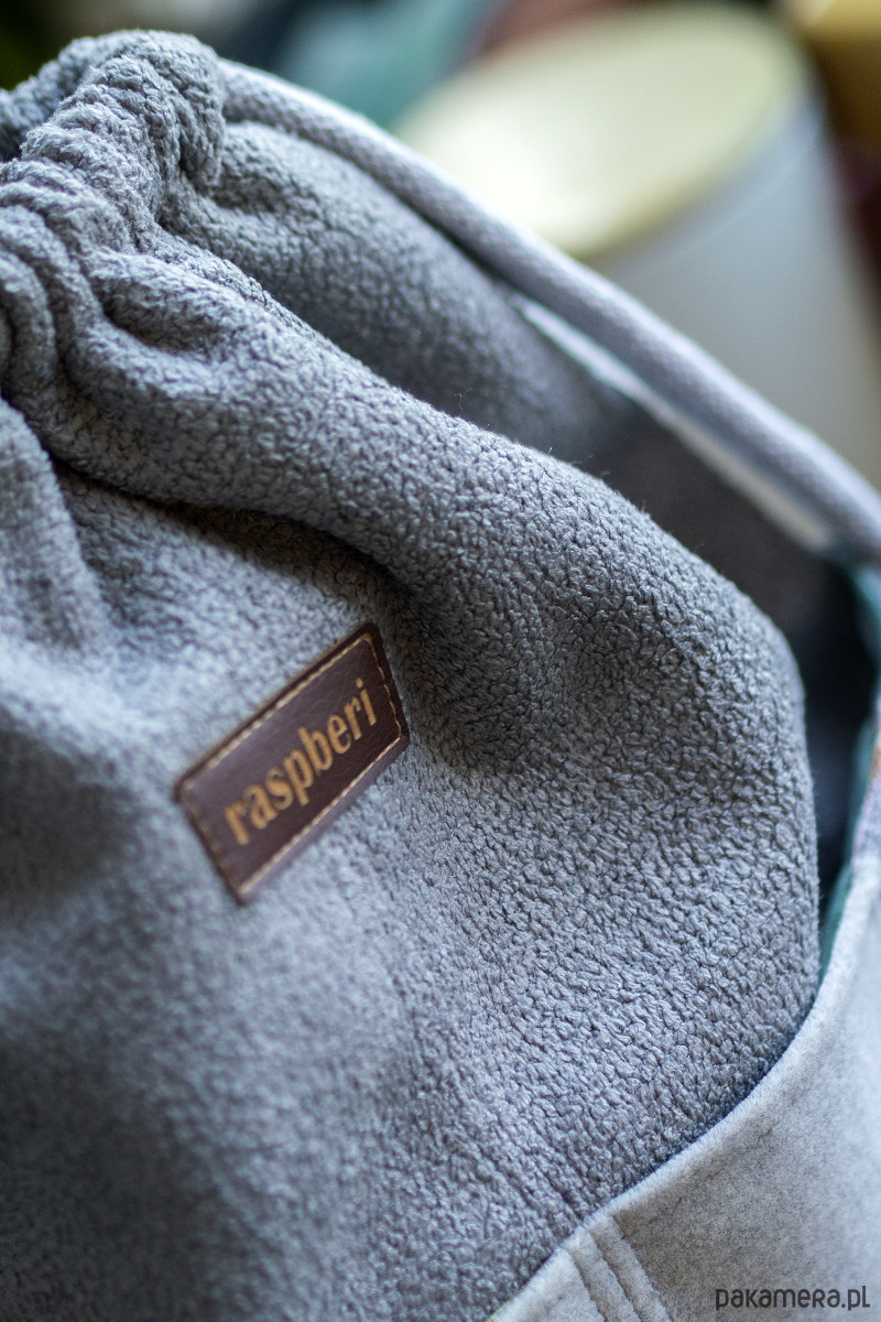 W środku plecak posiada kieszeń zapinaną na suwak. Wykończony jest bawełnianą podszewkę w kapibary.