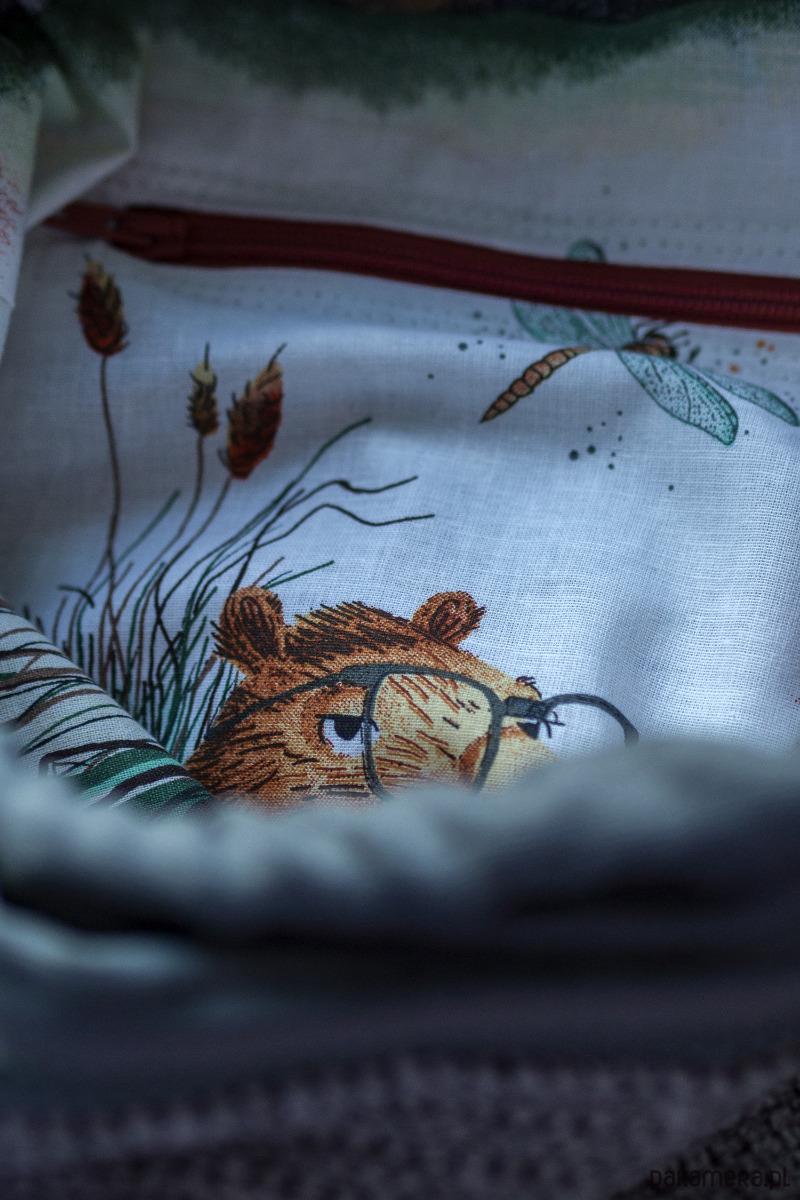 Biała, wzorzysta, bawełniana podszewka w kapibary.