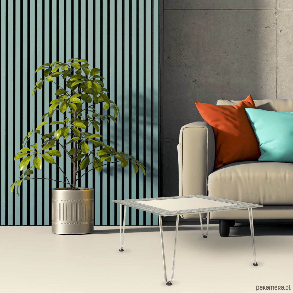 Stolik możesz ustawić w jasnym szarym wnętrzu które dopełni je kolorystycznie jak i w ciemnym pomieszczeniu uzyskując odpowiedni kontrast.