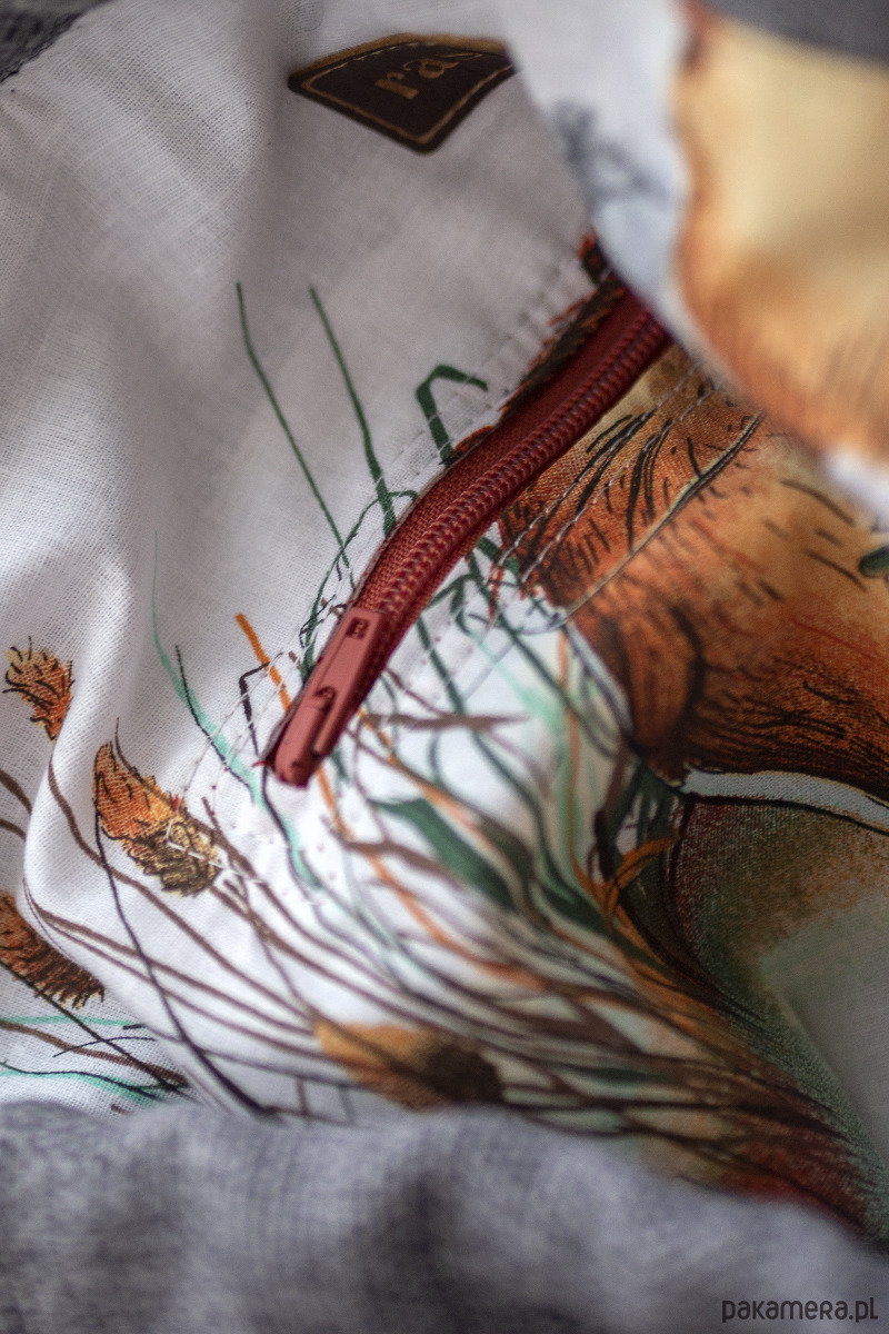 Biała, wzorzysta, bawełniana podszewka w kapibary. Kieszonka w środku.