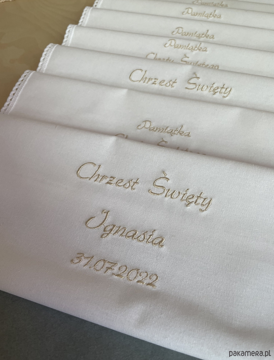 Na chusteczce wykonujemy dowolny haft. Po dokonaniu zamówienia prosimy o wiadomość z treścią oraz lokalizacją haftu.