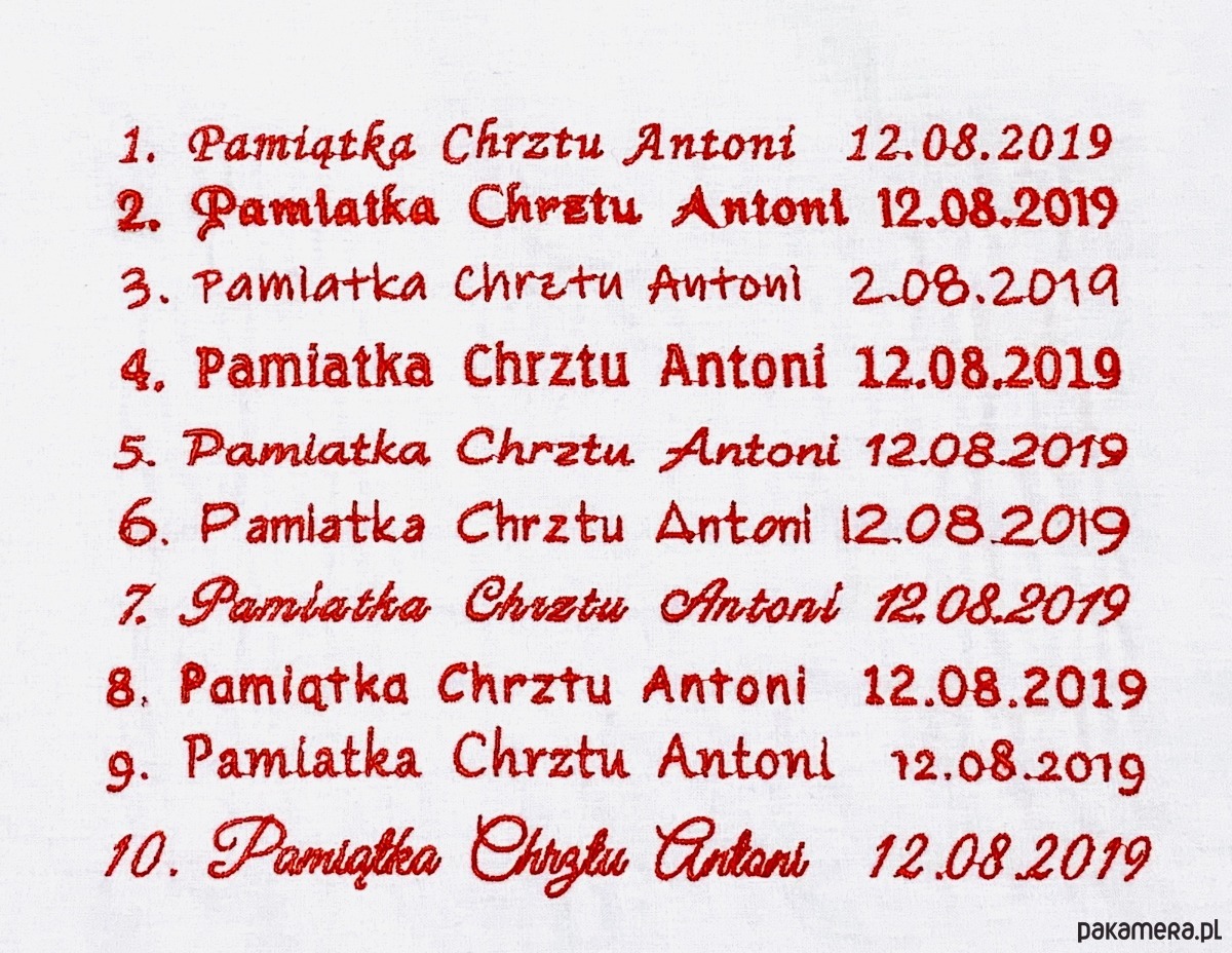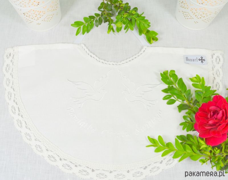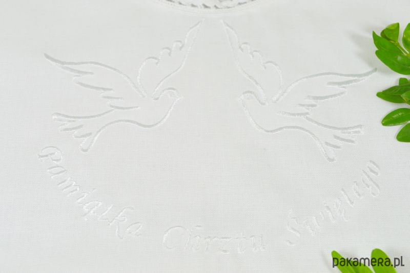 Przedstawiamy unikalną szatkę do chrztu uszytą z wysokiej jakości bawełny, wykończoną koronką bawełnianą. Istnieje możliwość wykonania haftu w innym kolorze oraz wykonać napisy w wybranej czcione . Na szatce dodatkowo wyhaftujemy imiona oraz datę chrztu. Wymiary szatki: 36x22cm (+/- 2cm) Zapraszamy! Cena obejmuje wyhaftowanie daty oraz imion.