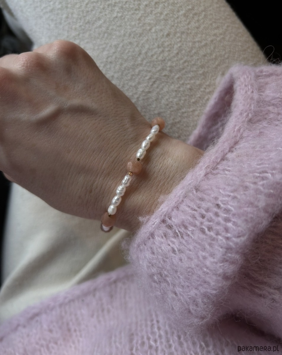 Szczęście - Amuletka z perłami kamieniem słonecznym