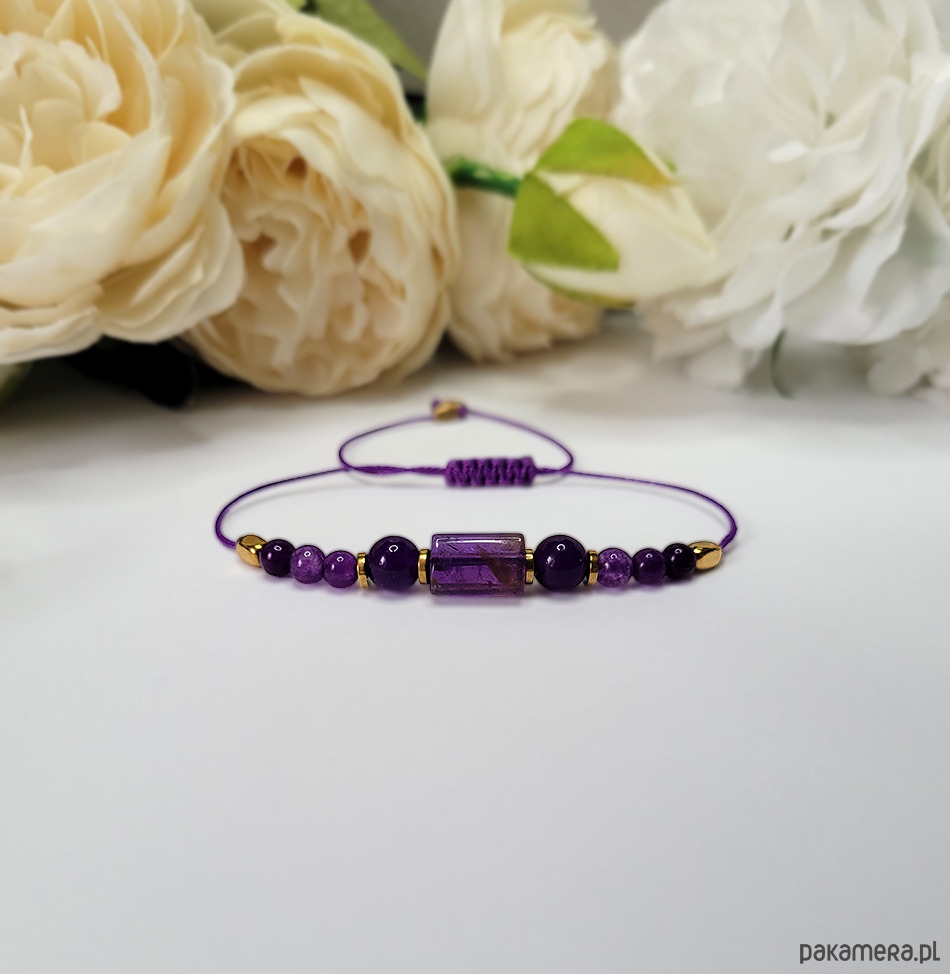 AMETYST kamień szczęśliwych związków. Przynosi spokój w życiu osobistym, dodaje cierpliwości i pomaga uwolnić się od negatywnych myśli. Zapewnia zdrowy sen, poprawia przemianę materii, a także pomaga w łagodzeniu konfliktów. Wzmacnia intuicję. Pomaga przy migrenach.