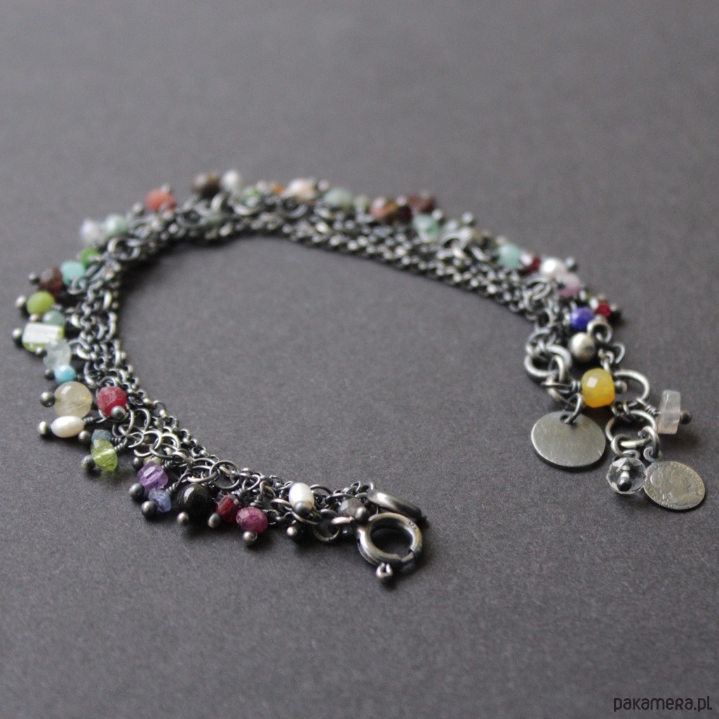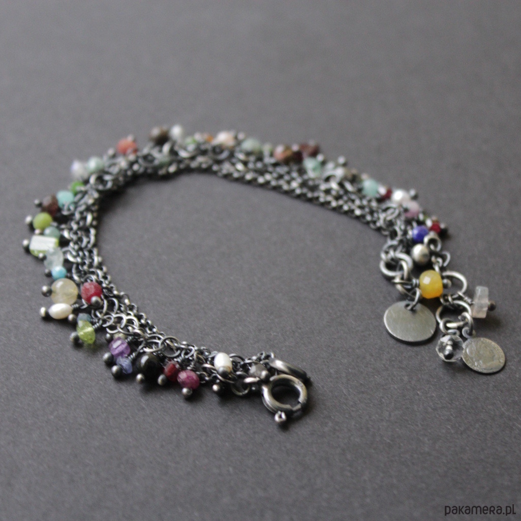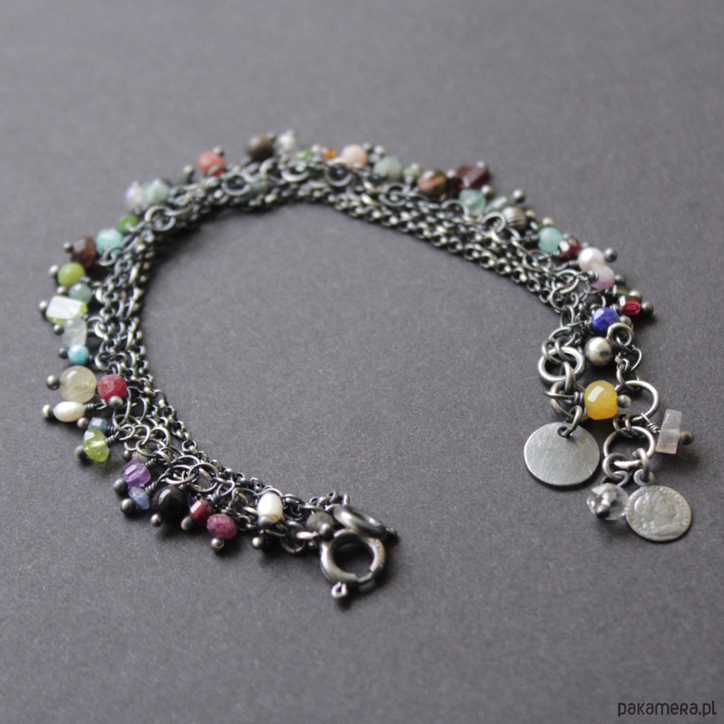 Energetyzujące bransoletki składające się z dwóch odrębnych bransoletke, które można osobić lub razem, wykonane została z oksydowanego srebra próby 925 oraz naturalnych minerałów.