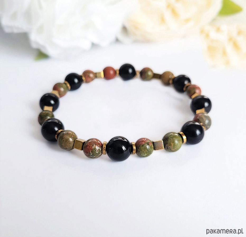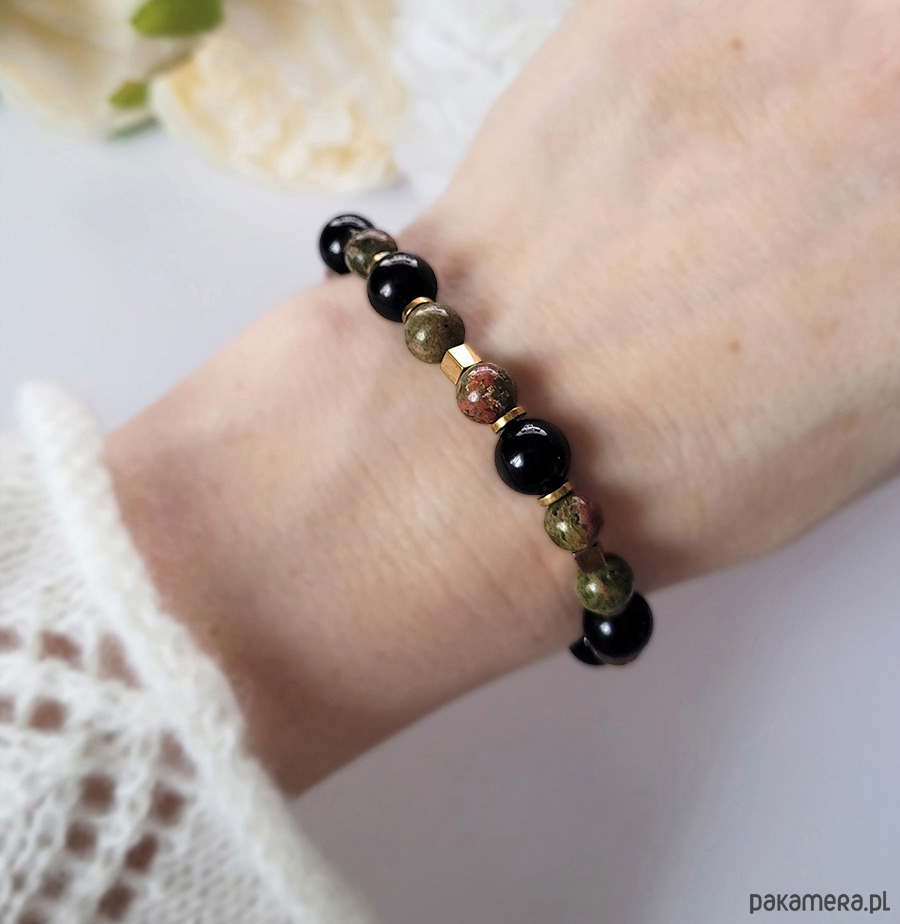 Szczęśliwy związek- bransoletka z Unakitem i Obsydianem