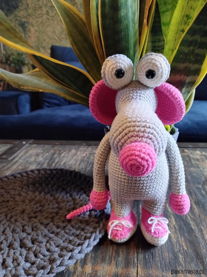 Oto Szczurek. Przyjazny, mało kłopotliwy w opiece. Miły towarzysz dziecięcych zabaw. Zna miejsca jakich nikt nie zna i dziury, w które zmieści się tylko on i jego właściciel/ka. To gwarant fantastycznych przygód. Wysoki na na 31 cm z uszami.