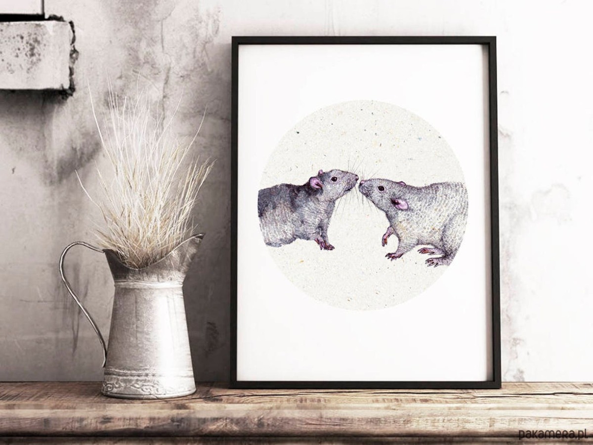 Szczurki- wydruk autorskiej ilustracji inspirowanej światem rodzimej fauny oraz estetyką vintage