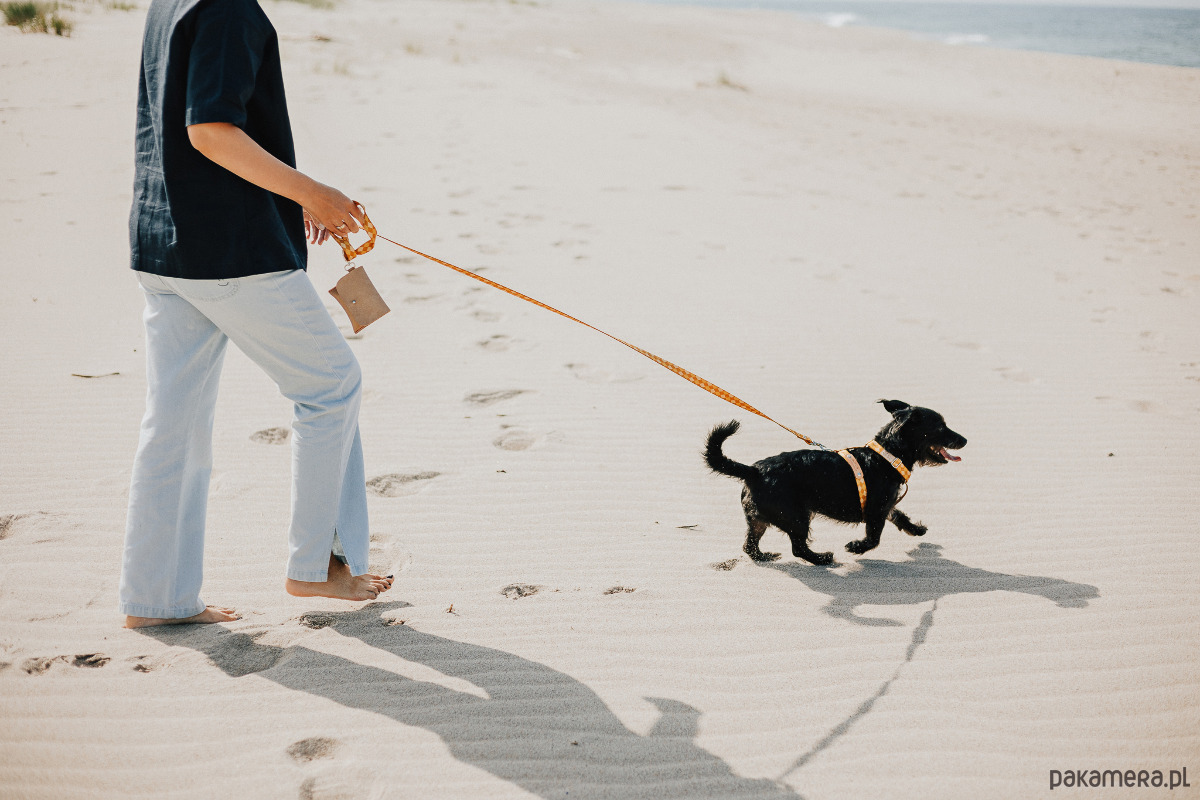 Szelki wykończone są metalowymi okuciami w kolorze srebrnym oraz posiadają możliwość personalizacji. Imię pieska oraz numer telefonu wybijamy ręcznie na skórze naturalnej, którą łączymy z szelkami za pomocą