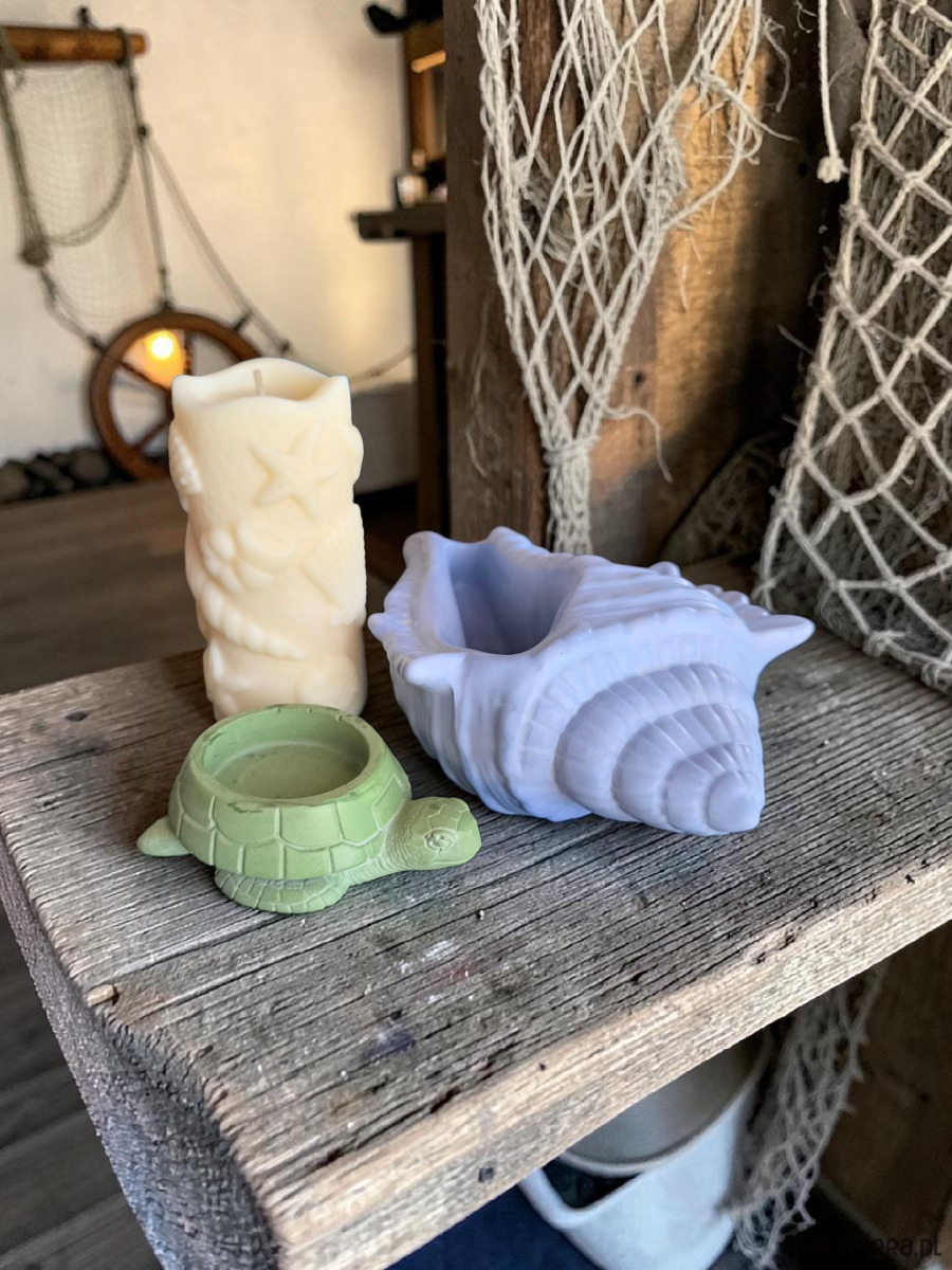 Szept Muszli- zestaw prezentowy świeca sojowa + naczynia gipsowe