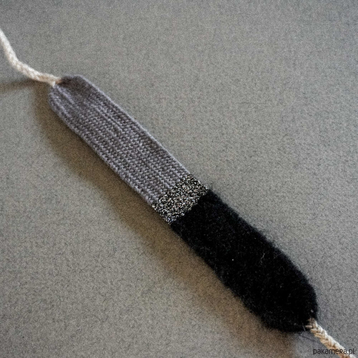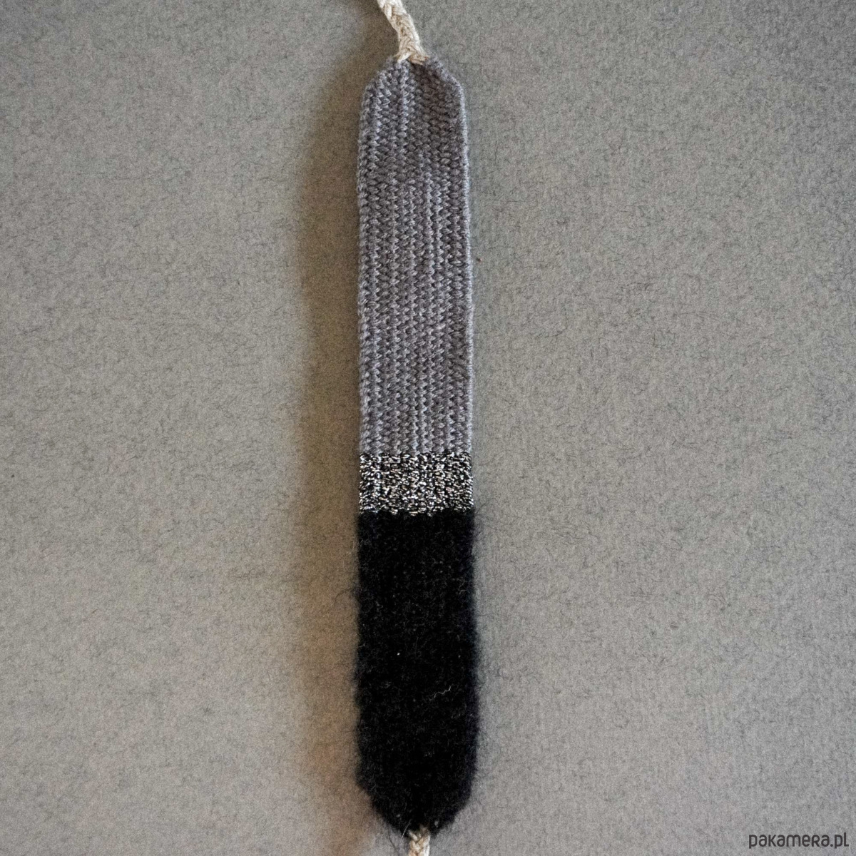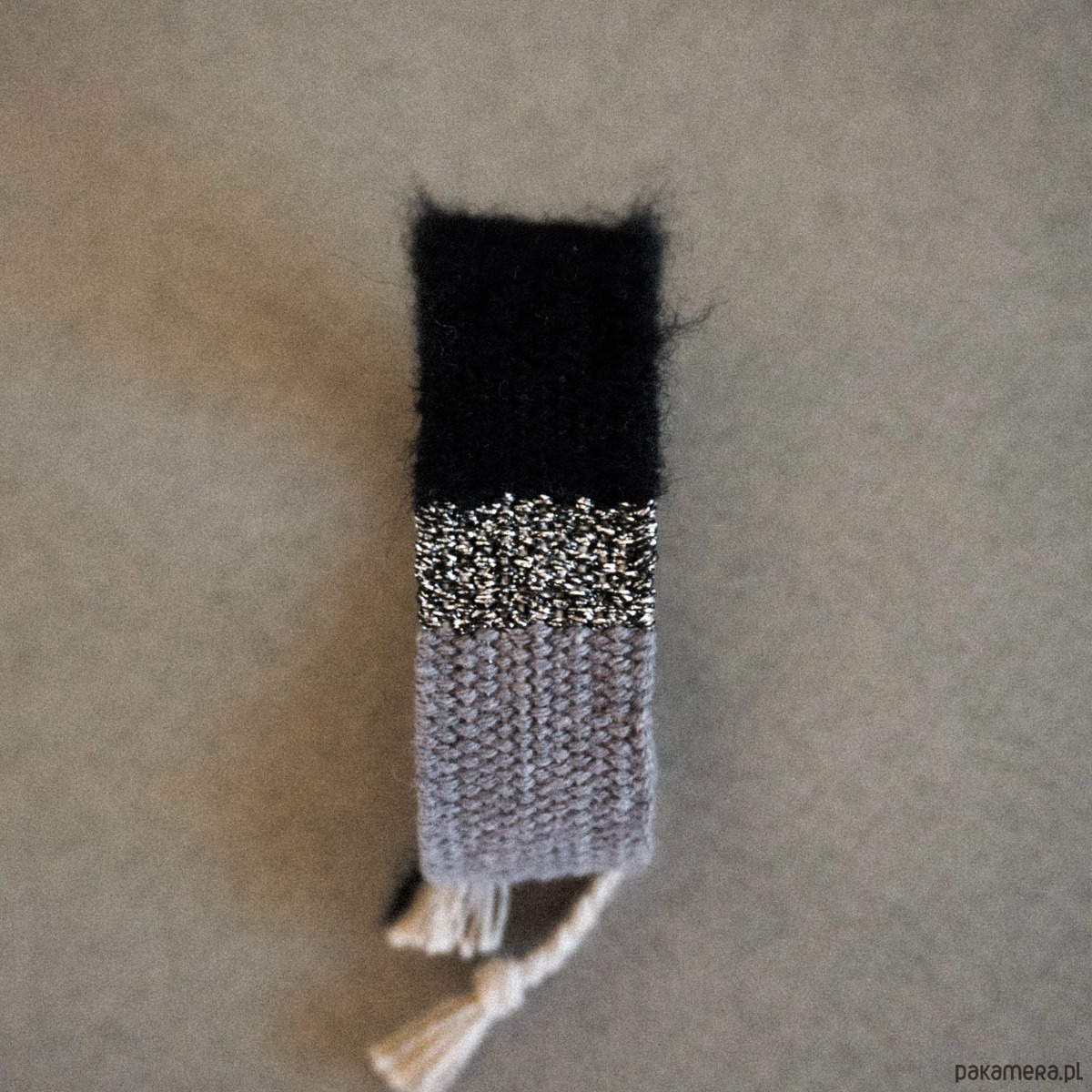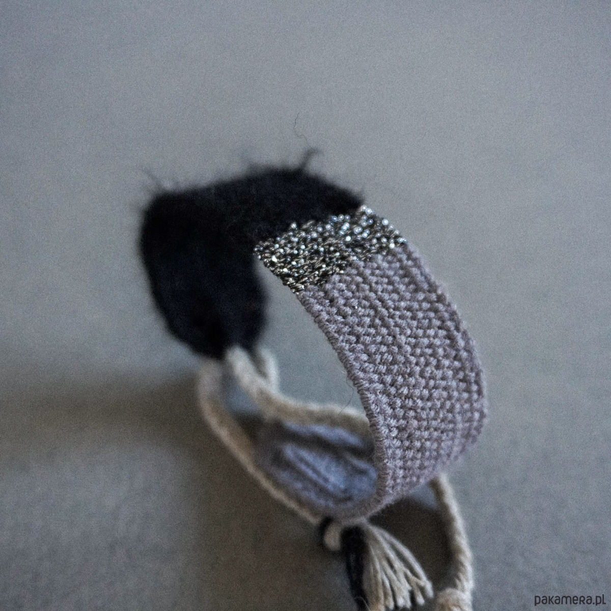 Szeroka bransoletka tkana na krośnie, wiązana na supełek