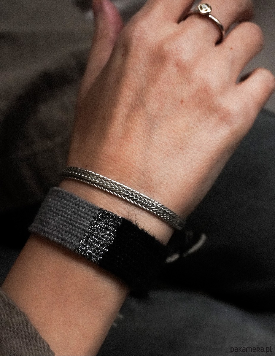 Bardzo ważne jest aby bransoletka leżała na gładkiej powierzchni wyprostowana, żeby część tkana się nie pogniotła. Oczywiście zabezpieczamy bransoletkę przed słońcem, kurzem, chemią.