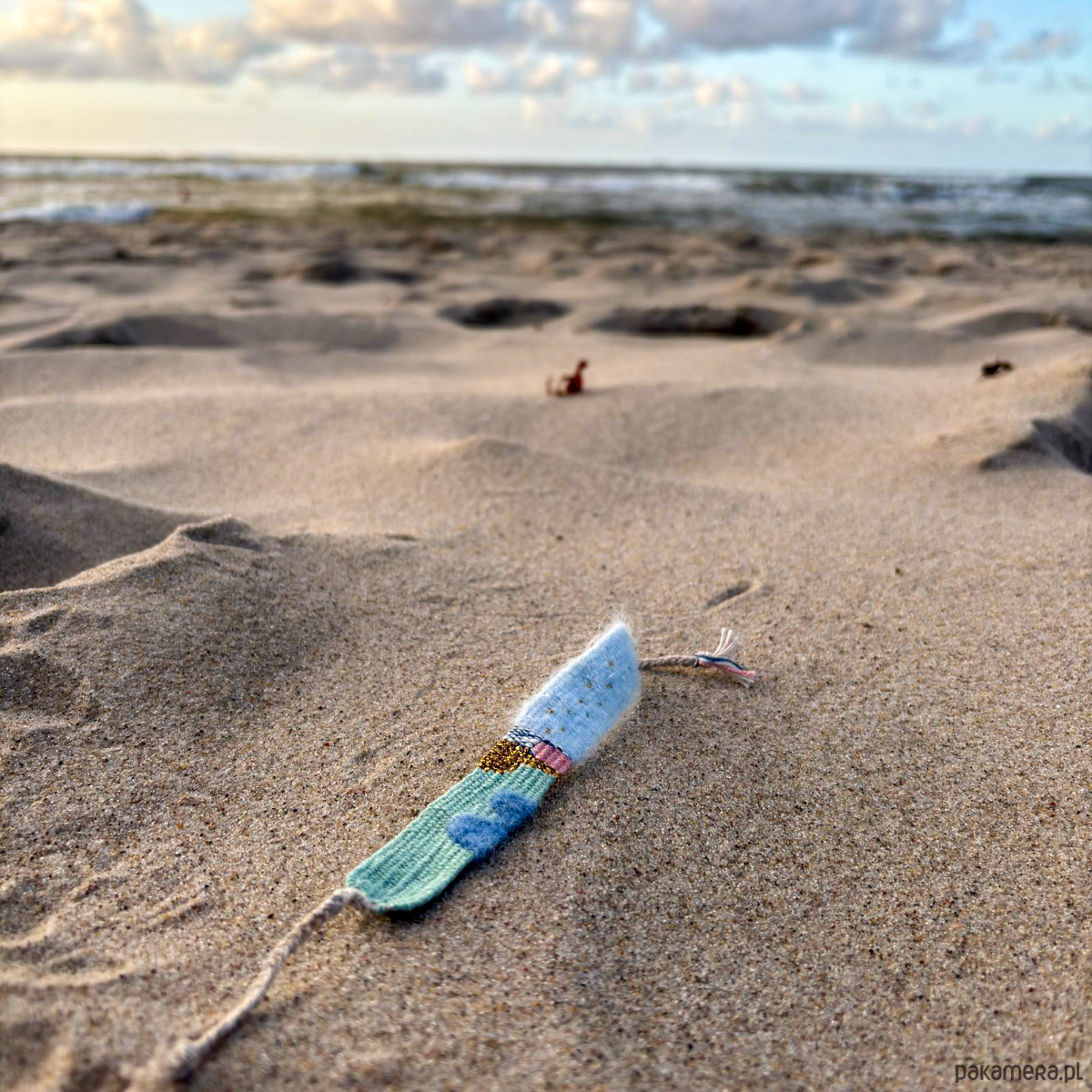 Bardzo ważne jest aby bransoletka leżała na gładkiej powierzchni wyprostowana, żeby część tkana się nie pogniotła. Oczywiście zabezpieczamy bransoletkę przed słońcem, kurzem, chemią.