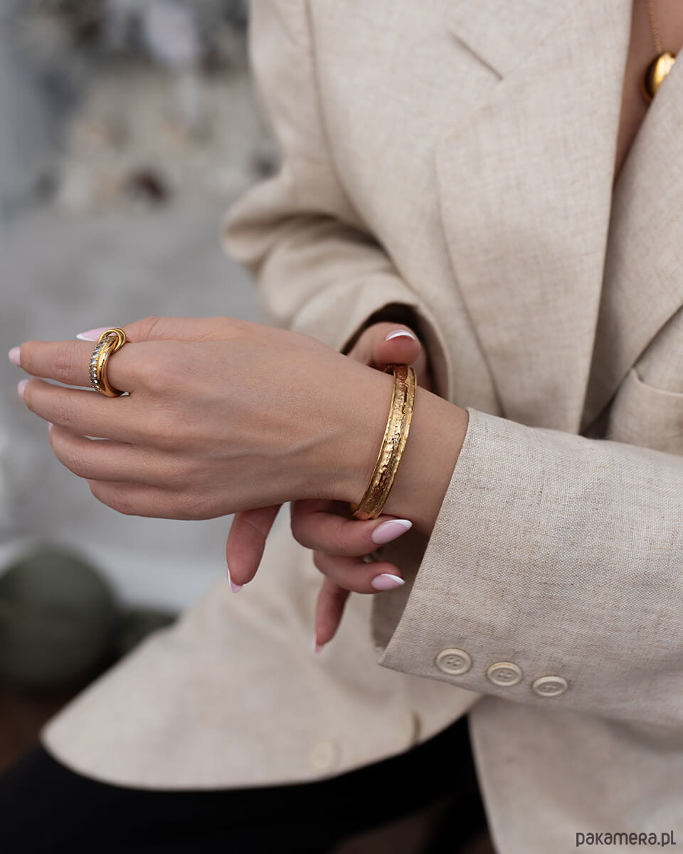 Szeroka złota młotkowana bransoletka ze stali chirurgicznej premium Paraiso Z