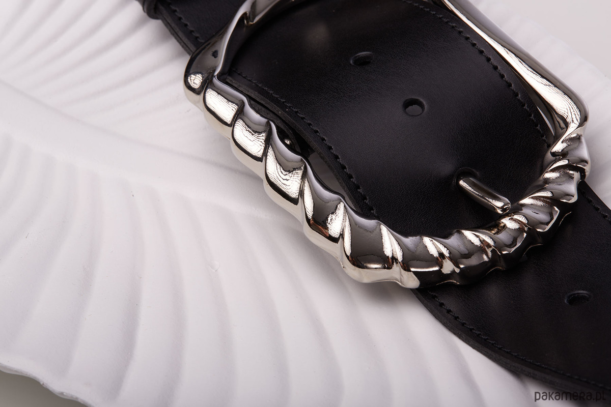 Szeroki pasek damski ze skóry naturalnej do noszenia na wysokości talii z niezwykle elegancką, ekskluzywną włoską klamrą. Będzie idealnym uzupełnieniem wielu różnych kobiecych stylizacji. Sprawdzi się zarówno jako pasek do spódnic, sukienek czy wysokich spodni, jak również jako pasek do płaszcza.