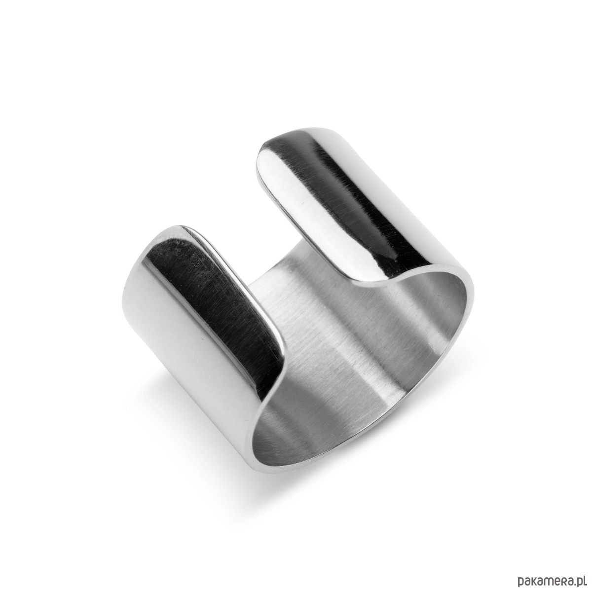 Obrączka jest szerokości 1,5 cm, można ją lekko dogiąć i odgiąć - dopasowując się do palca.