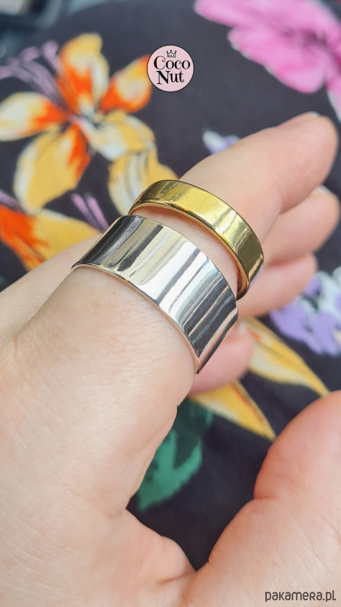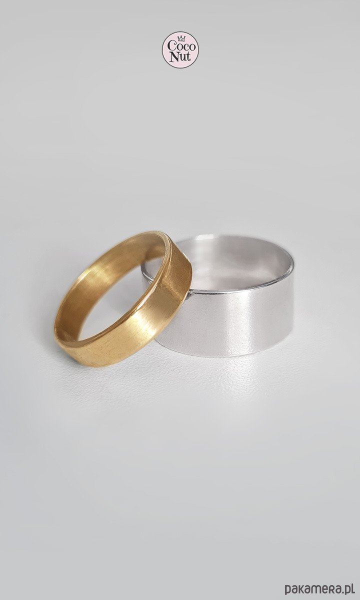 Dwie obrączki wykonane ze srebra o szerokości ok. 5 mm i 10 mm.