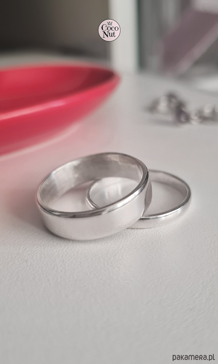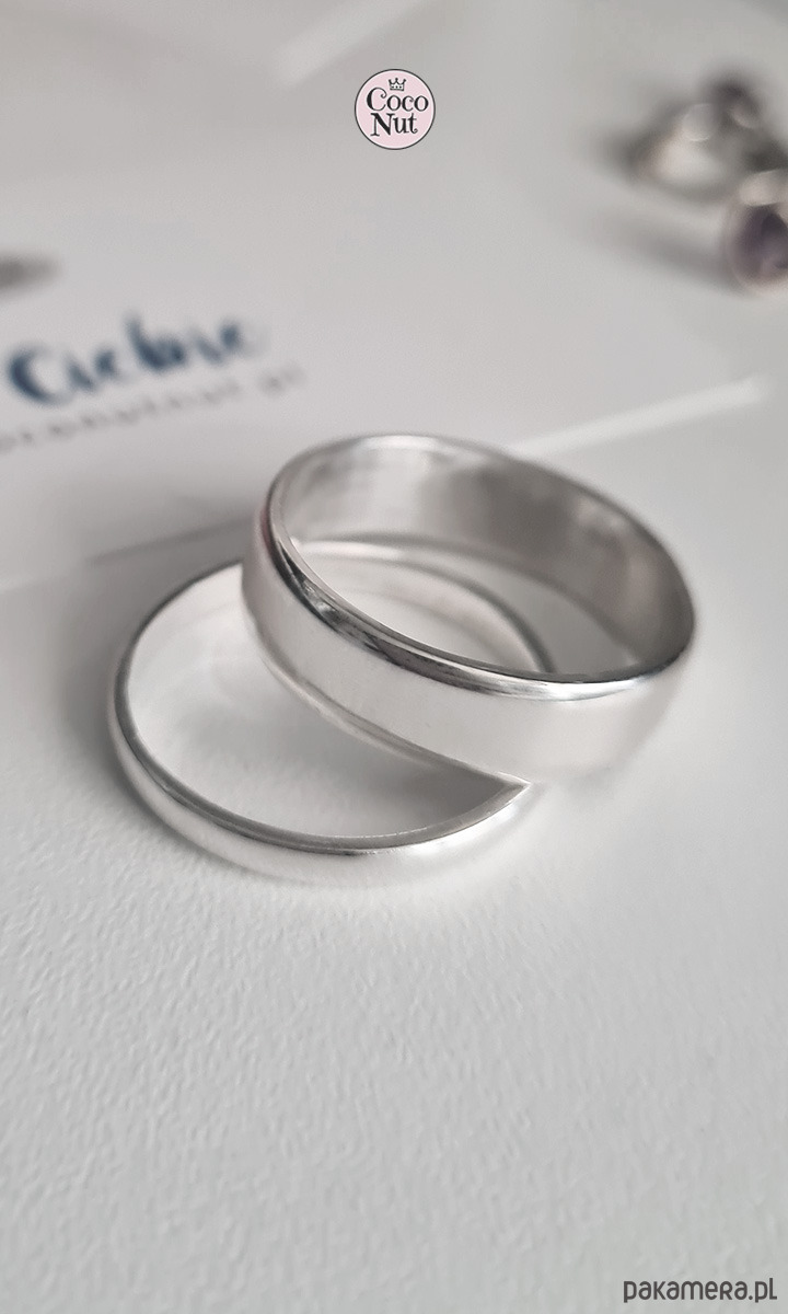 Dwie obrączki ze srebra o szerokości ok. 8 mm i 3 mm.