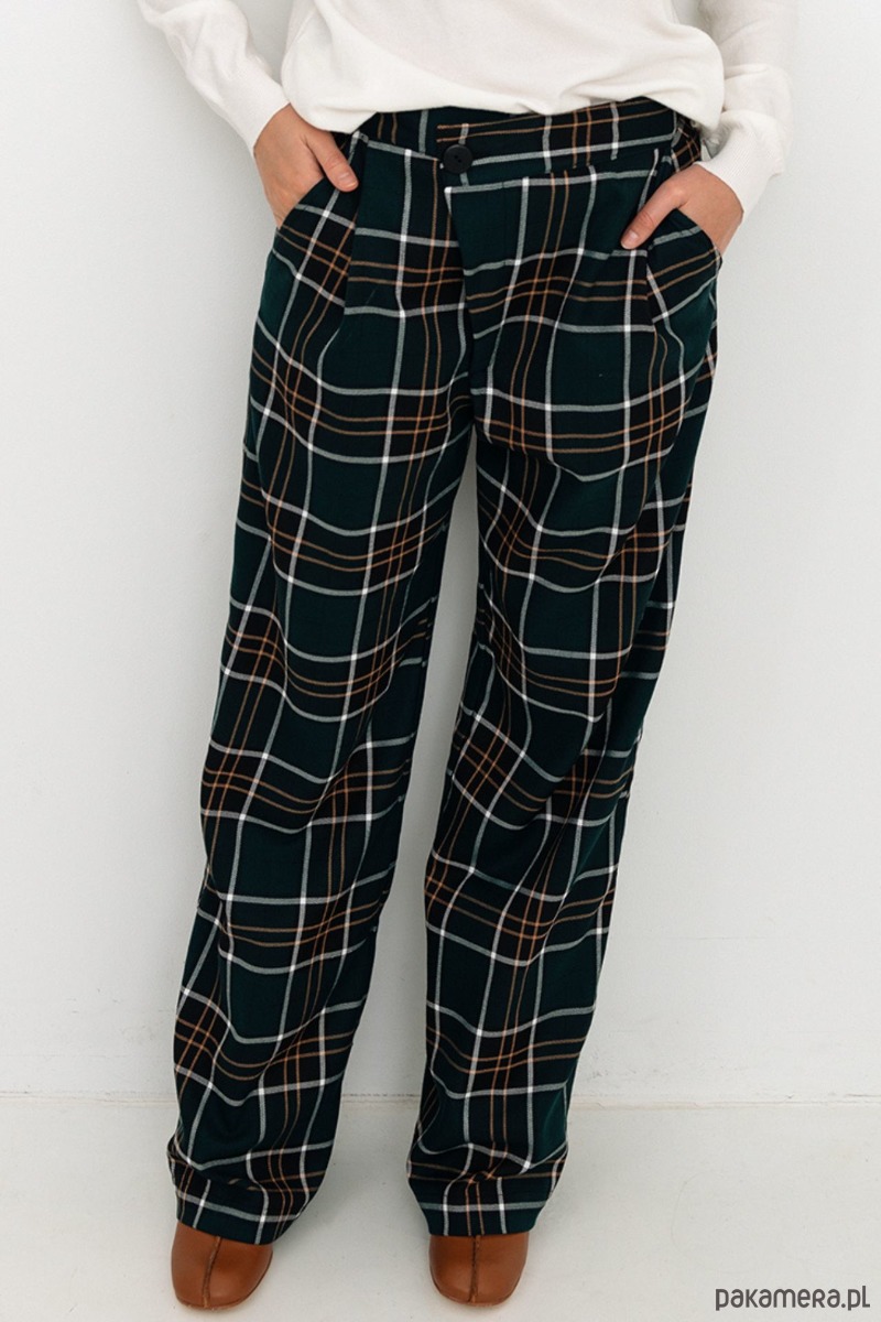 Spodnie damskie z wiskozy w charakterystyczną dużą kratę.