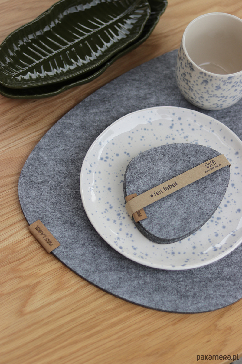 - kształt: gładka, minimalistyczna podkładka w kształcie inspirowanym kamieniem z metką wykonaną z Washpapy