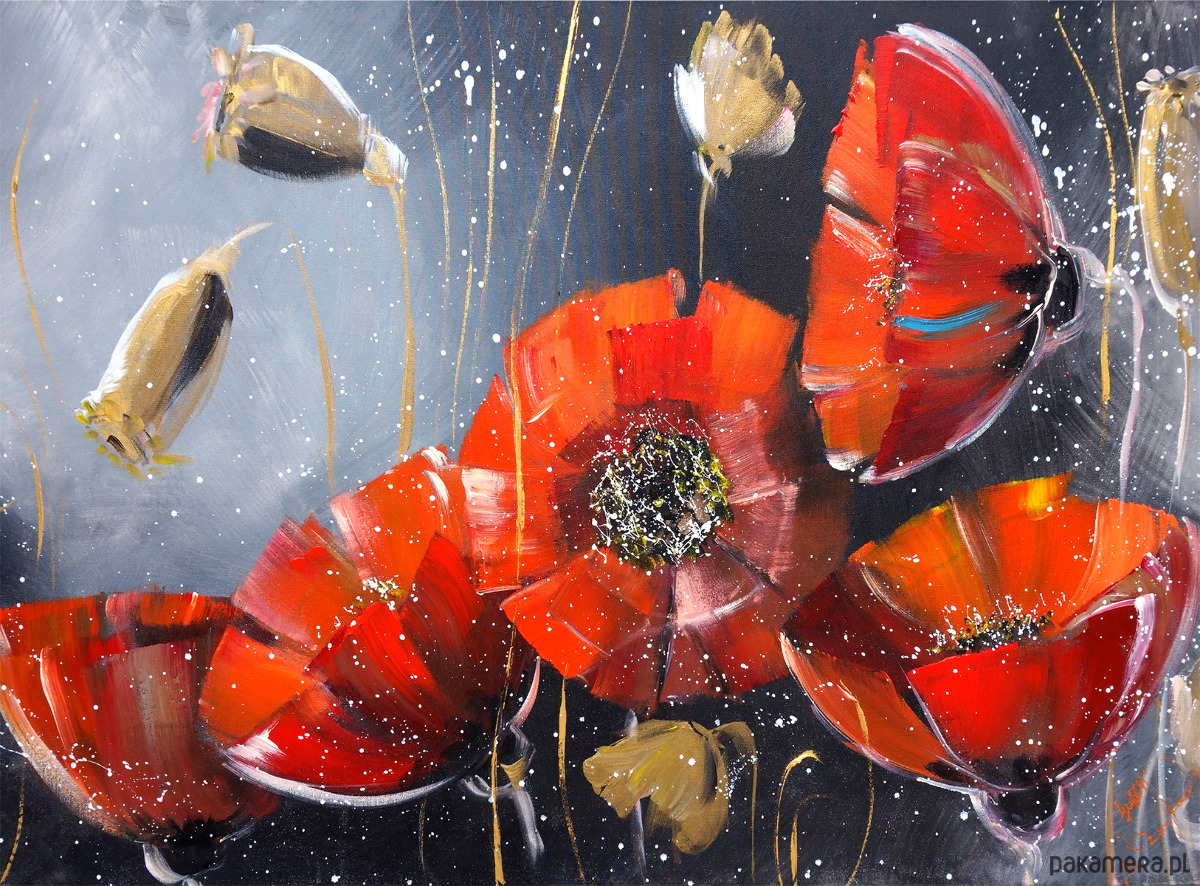 Szkatułka "maki 4 na czarnym "