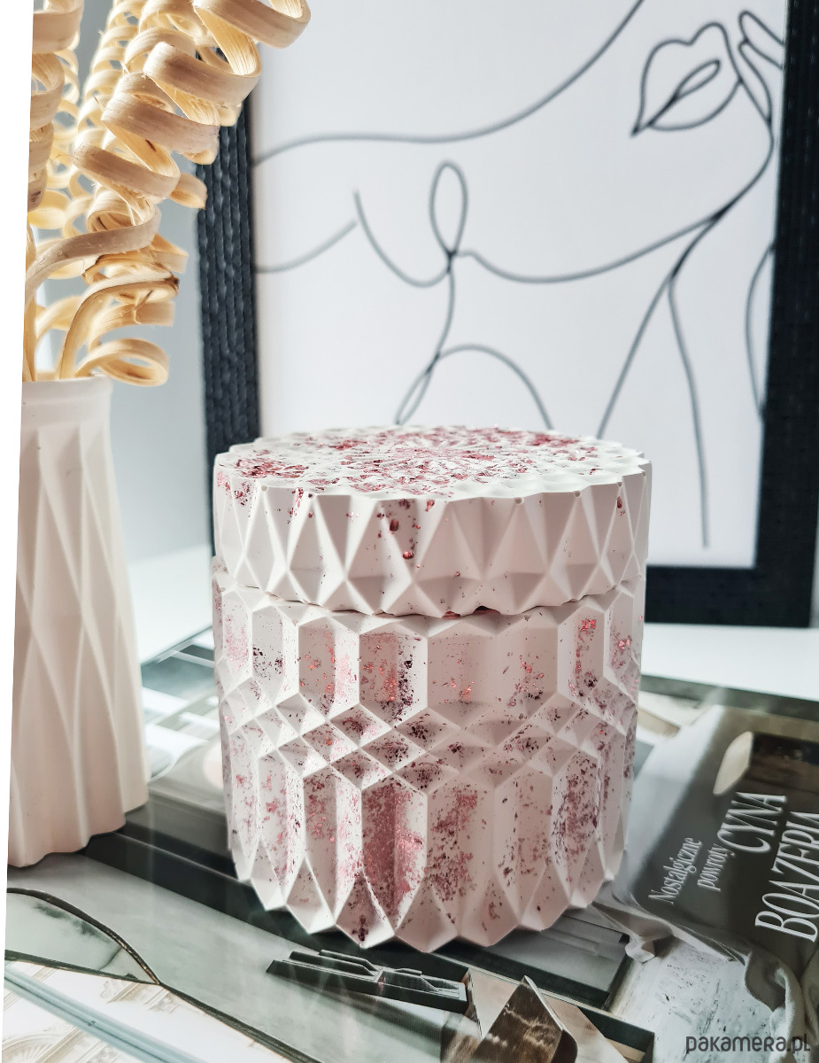 Nietypowy kształt szkatułki świetnie komponują się z większością stylów, a także mebli.