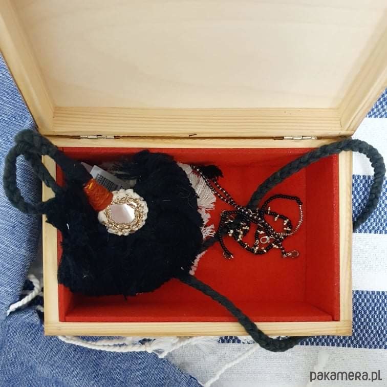 Ozdobna szkatułka na biżuterię to również rewelacyjny pomysł na prezent dla dziewczyny, żony, mamy lub babci. Każda kobieta ucieszy się z takiego podarunku. Pudełko jest dostępne w atrakcyjnej cenie jak na rękodzieło. Można je umieścić na komodzie w sypialni lub w swojej garderobie, na toaletce czy w łazience. Szkatułka pomieści zegarki, kolczyki, wisiorki, łańcuszki, bransoletki oraz ozdobne spinki.