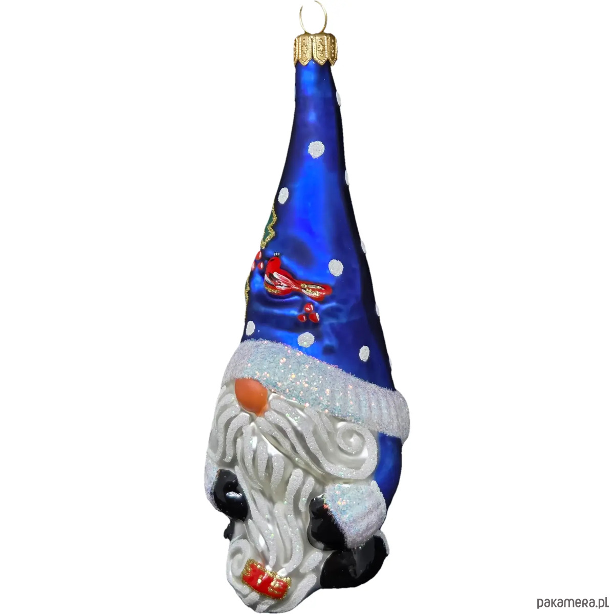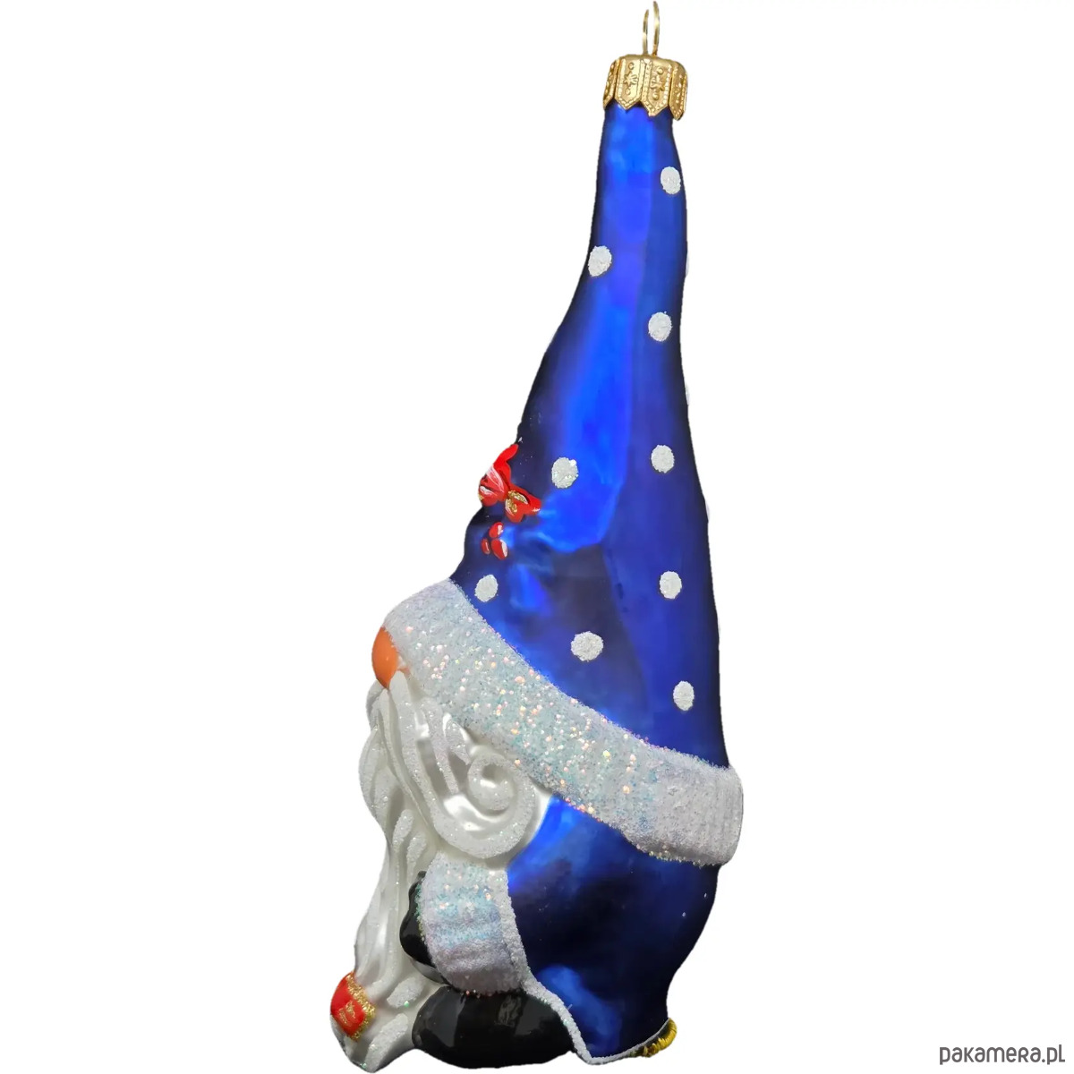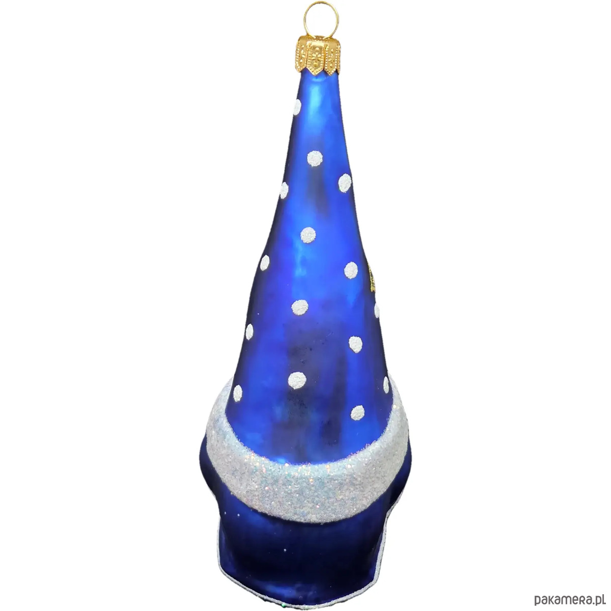 Szklana Bombka Ręcznie Malowana Granatowy Skrzat w Grochy