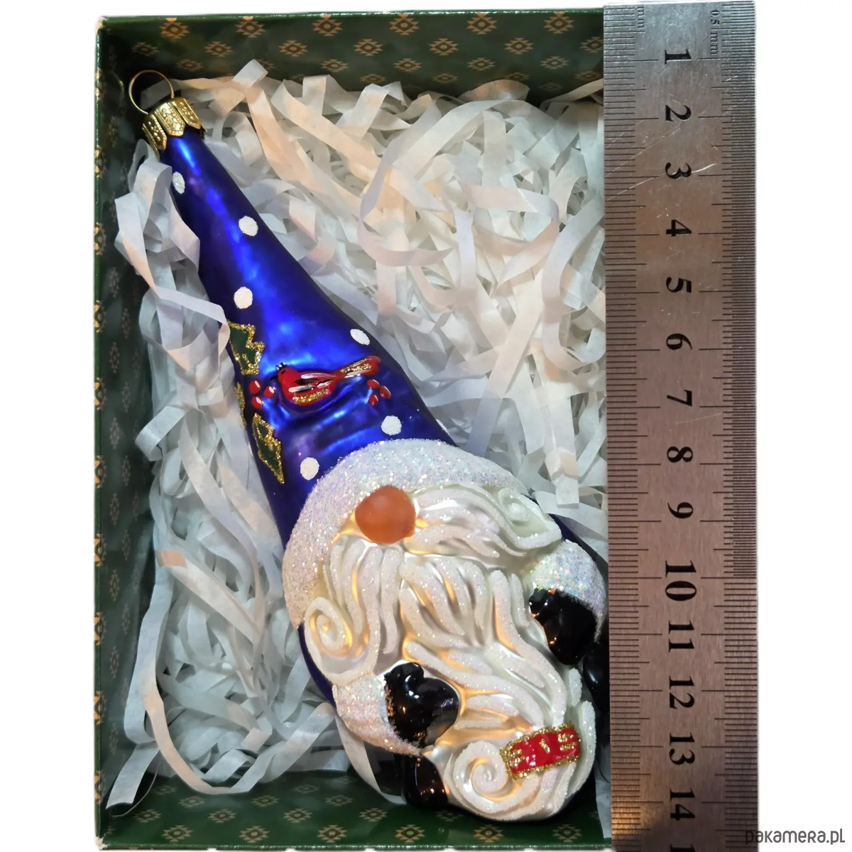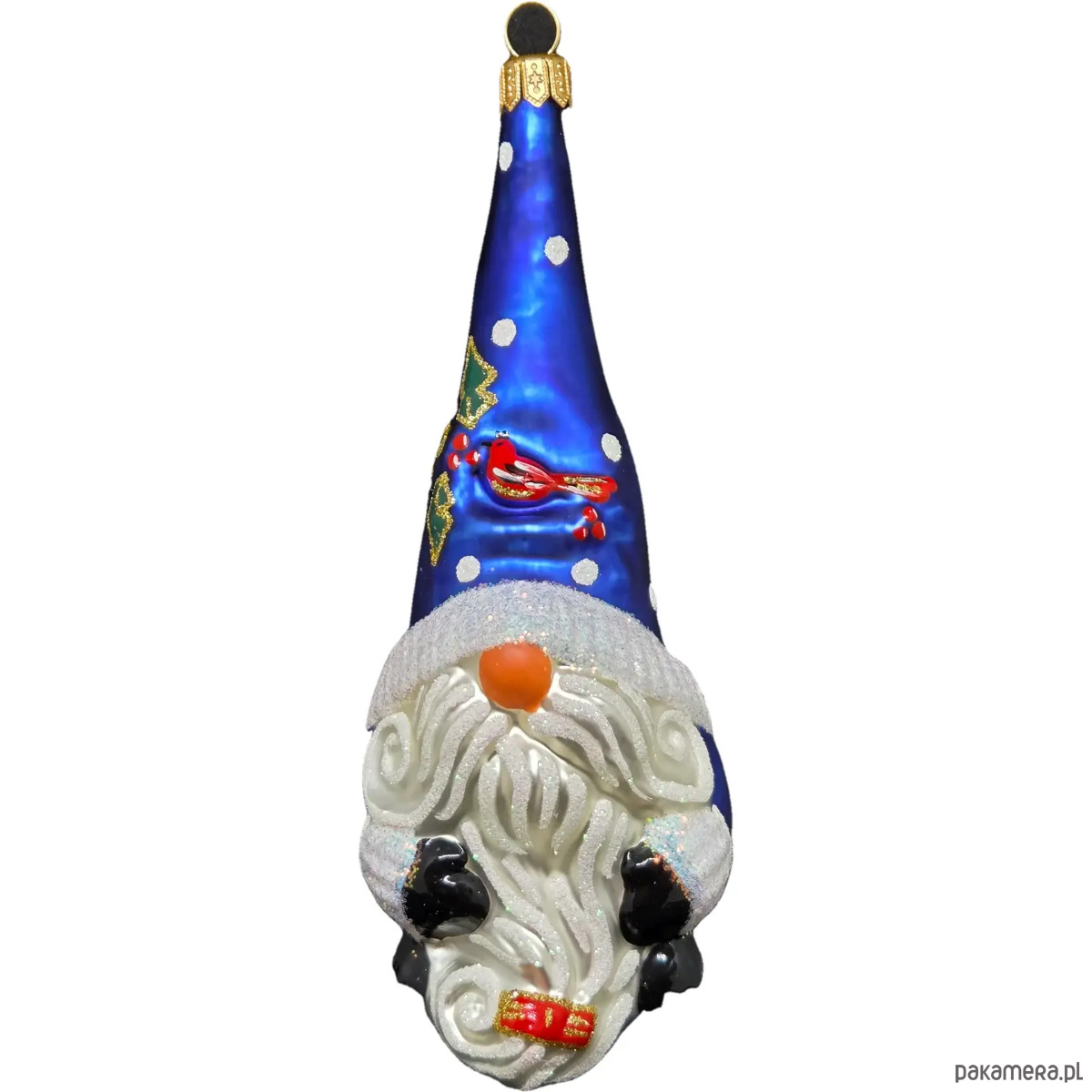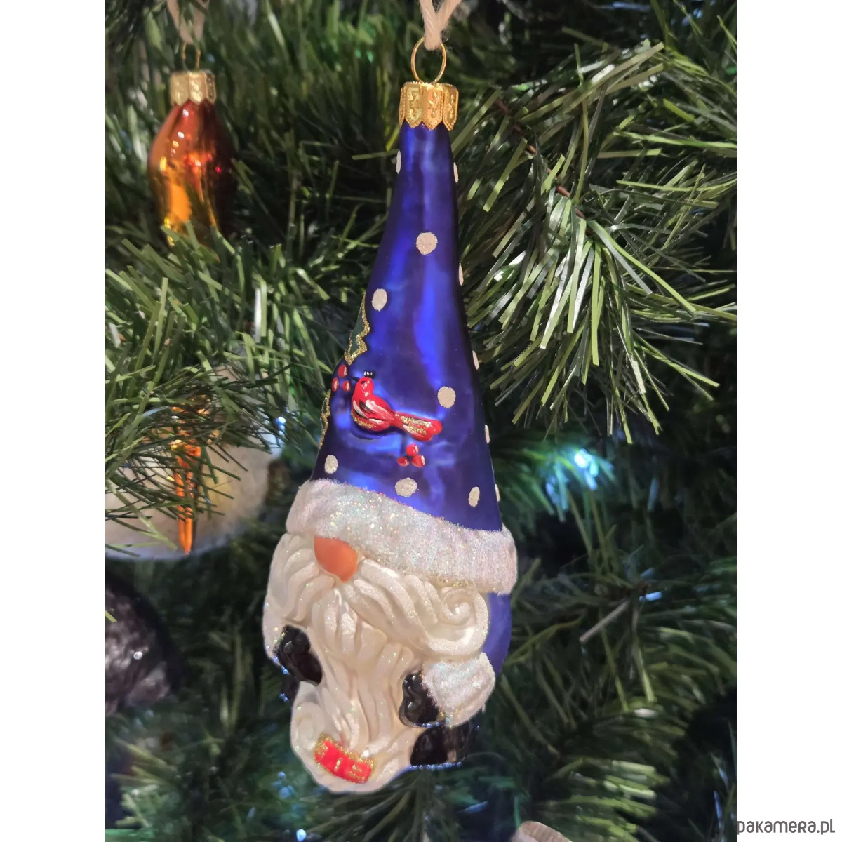 Szklana Bombka Ręcznie Malowana Granatowy Skrzat w Grochy