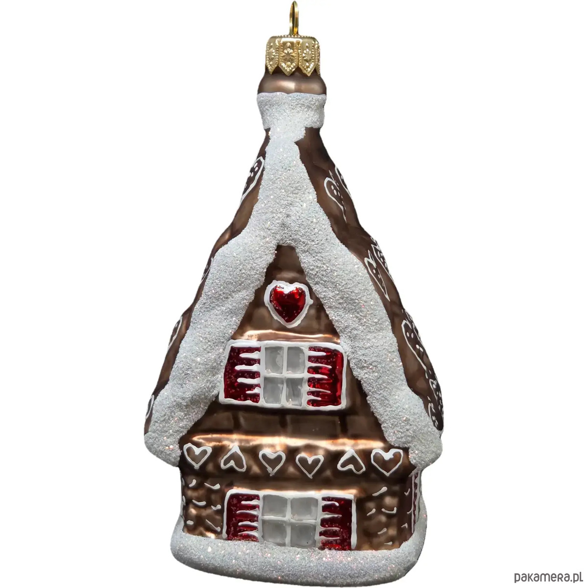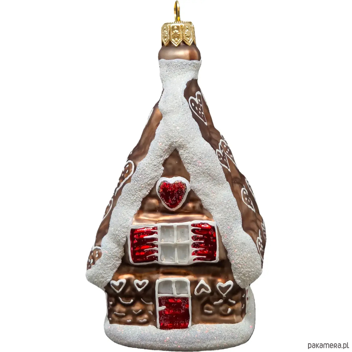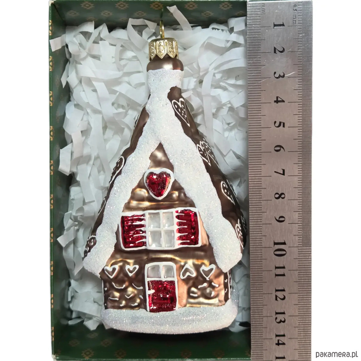 Szklana Bombka Ręcznie Malowana Zimowy Domek z Brązowym dachem